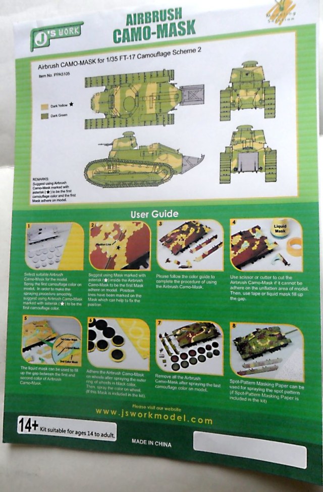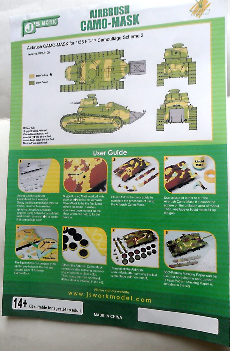 У этой китайской компании имеется еще много различных масок на другие образцы техники. Кстати, например, на FT-17 и В1bis имеются по три разных варианта масок (просто я взял самые простые).