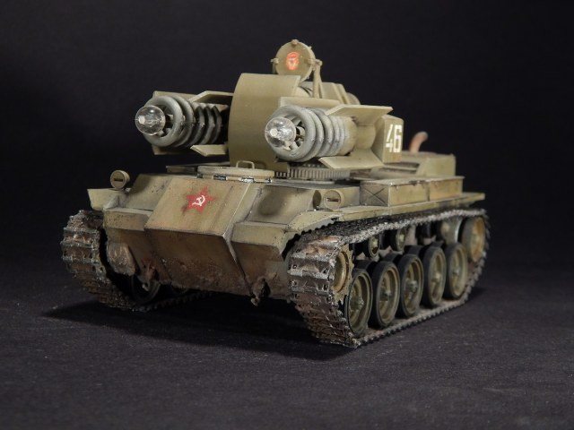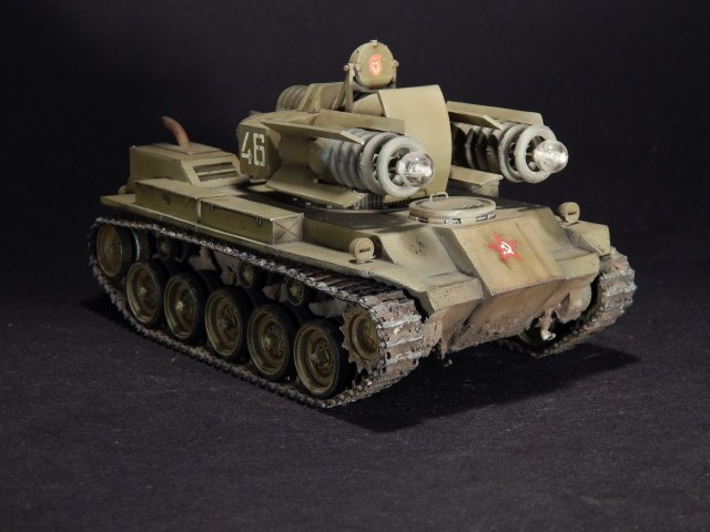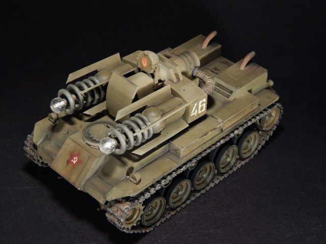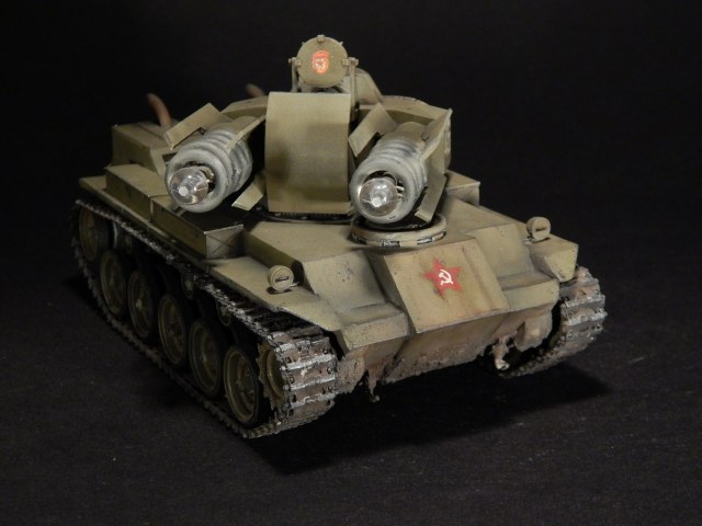 цвет в сказке обсуждался - пришли к заключению, что красные полосы идентифицировали игрока (были там и синие, и зеленые, и фиолетовые вместо красного), поэтому автор решил модель покрыть камуфляжем советских войск времен карибского кризиса.
