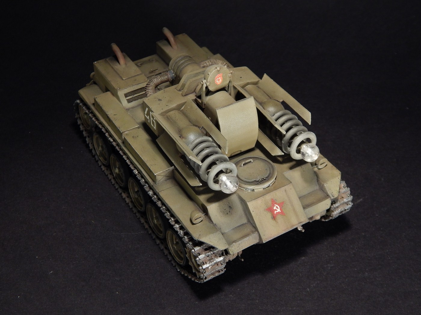 Из замечаний по базовому набору - хочу кинуть камень в сторону Итальери. Обычно у них идут резиновые гусеничные ленты. Этот набор они укомплектовали наборными пластиковыми траками. Но траки весьма специфического качества - во-первых, по паре толкателей на каждом траке в труднодоступных выемках. Во-вторых, пластик оказался дубовым, клеился очень плохо.