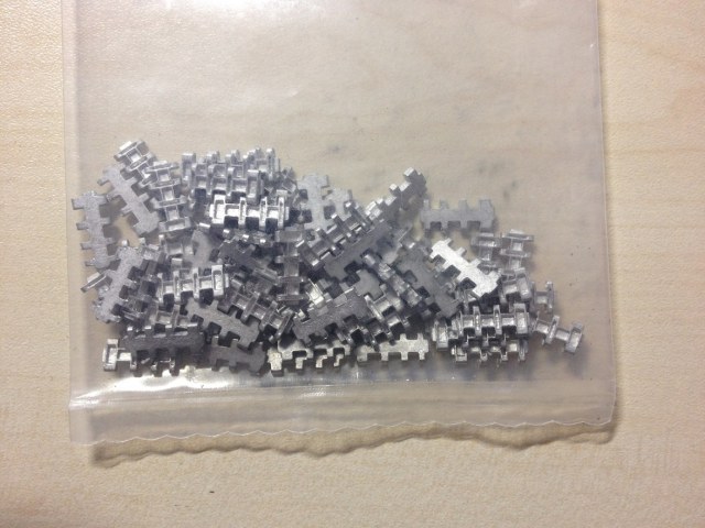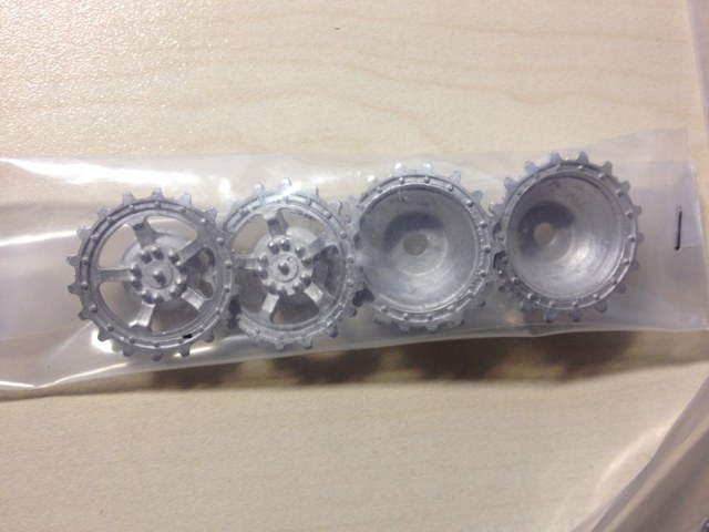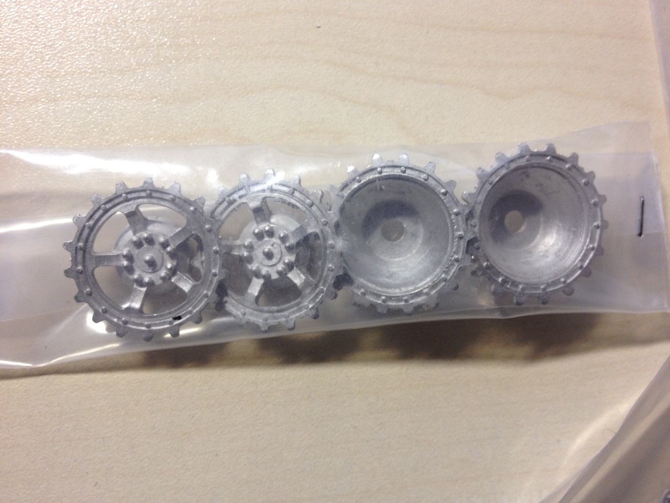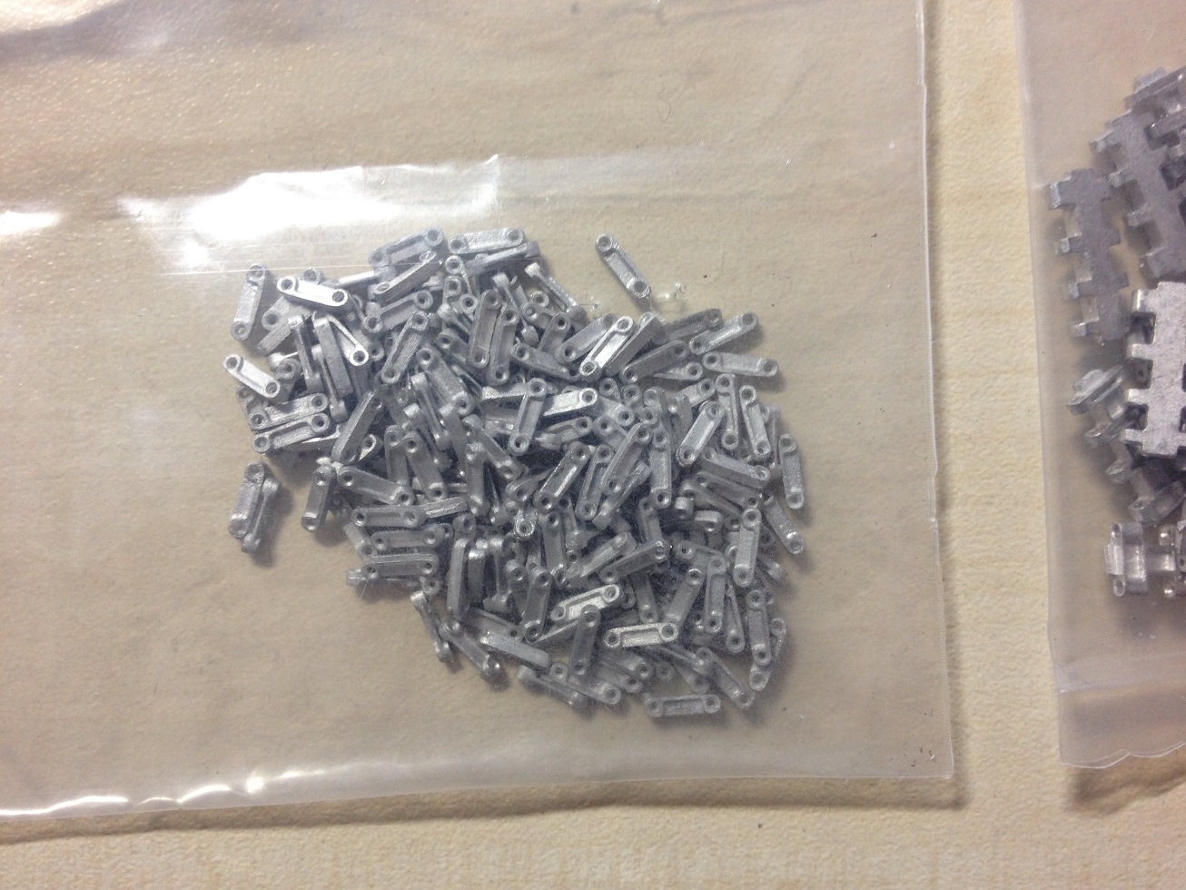 В стандартной упаковке от данного производителя находится 4 пакетика с различными частями гусениц, в одном из которых лежат ведущие звёздочки и проволока, а так же мне попался необычный косяк производителя, фото которого прилагается.