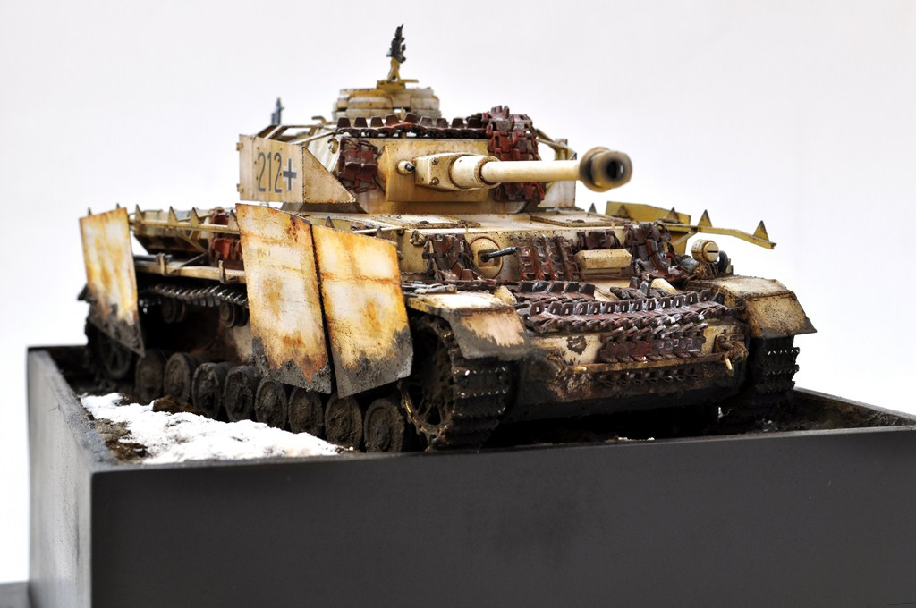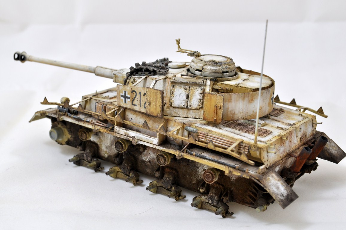 Облезлость с помощью жидкостей АК. Как раз в то время подвернулась книжка Майка Ринальди TankArt, почерпнул оттуда полезностей и попробовал их сразу. Да, получается богаче из-за добавления слоев при тонировке. Но нужно уметь разглядеть эти слои, иначе смазывается восприятие в целом. Фильтров не использовал, но много работы маслом. Что бы придать неравномерности камуфляжу использовал и белое масло и белую эмаль Хамброл и разные оттенки желтого. Дальше все стандартно, смывка, потеки и грязь.