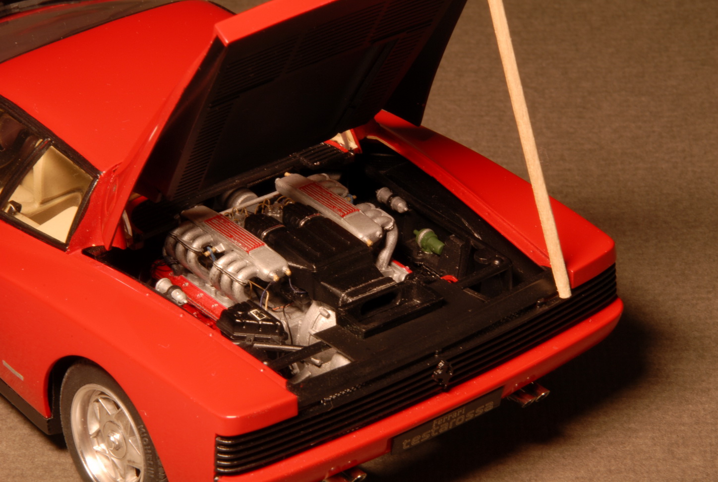При сборке в салоне появились ковры, ремни безопасности, двигатель обрел проводку, боковые указатели поворотов стали прозрачными, в задней части моторного отсека появилась сеточка, сквозь которую можно разглядеть глушитель ну и наконец, выхлопные трубы из натуральной полированной нержавейки.