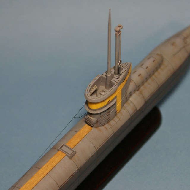 Модель достаточно новая, но как всегда у трампетера, без косяков не обошлось. В наборе дается три варианта рубки, но ни одной подтверждающей фотографии я не видел. Но поскольку эта подлодка собиралась для отдыха, с целью отвлечься от других проектов, то решил не заниматься перепилом модели, а выбрал один из изкоробочных вариантов. Сама сборка не доставила никаких проблем, лодка собралась буквально за вечер. Из доделок только поменял перископ и шнорхель на детали от старой модели ICM, и заменил деталь палубы, которая выглядела жутковато, на вариант из шпона.
