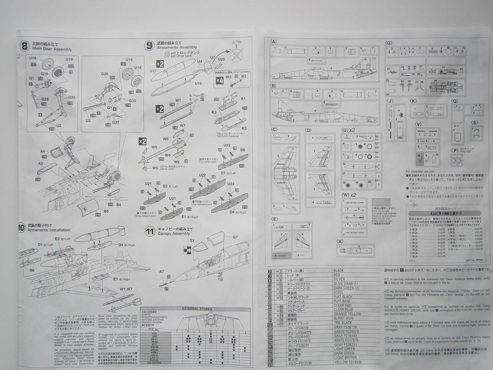 Инструкция по сборке модели выполнена на одном раскладном листе, читается хорошо и понятно, также в инструкции представлена схема окраски данного самолета, производитель предлагает прототип из эскадрильи 8th SQ 3rd AW J. A. S. D. F. ( ACM MEET 95).
