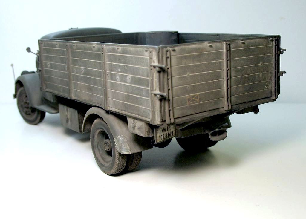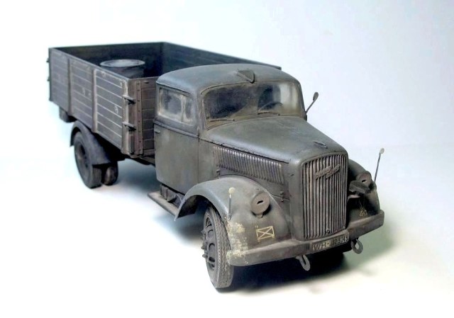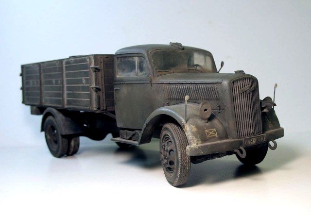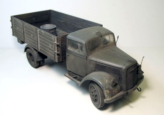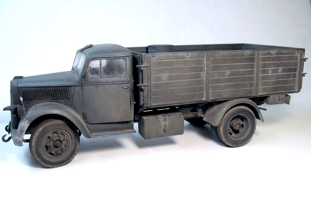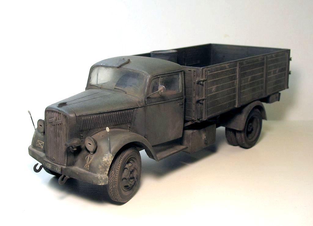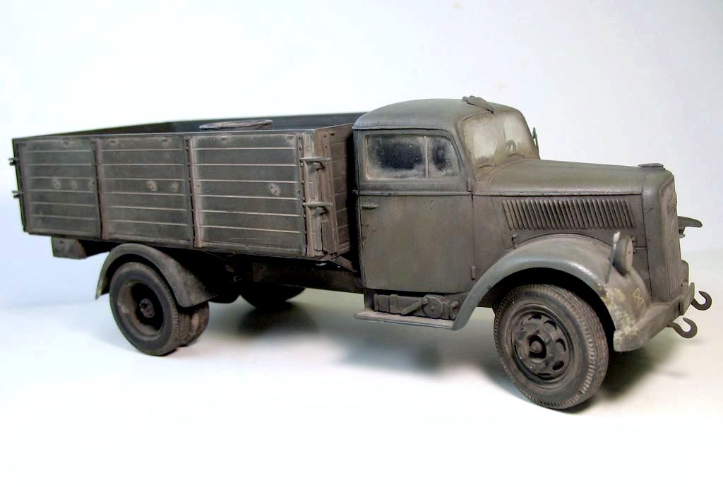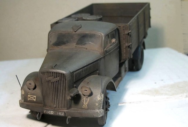 Модель Опель Блитц от Итальери, всем известный старинный кит . Делался из коробки с применением дешевых китайских колес, ящик сделал взамен утерянного , испортил лобовое стекло......пришлось делать немного грязным ,запыленным.Трудностей в сборке не наблюдалось, стыкуемость деталей хорошая.