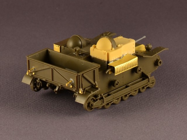 Сборку модели проводил Денис Давыдов, за что хочется выразить ему огромную признательность! При постройке использовалось фототравление, смоляные детали из конверсионного набора от Blast Models, пулемет из набора Mirage, кое-что самодельное. Впоследствии, перед самой окраской, я добавил еще пару деталей – заменил ящик ЗиП на более квадратный, маленький, также из набора Mirage, заменил буксирные петли на ранний вариант, и добавил скобу спереди каземата.