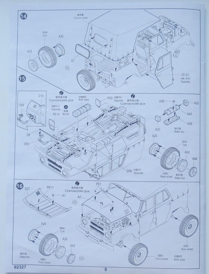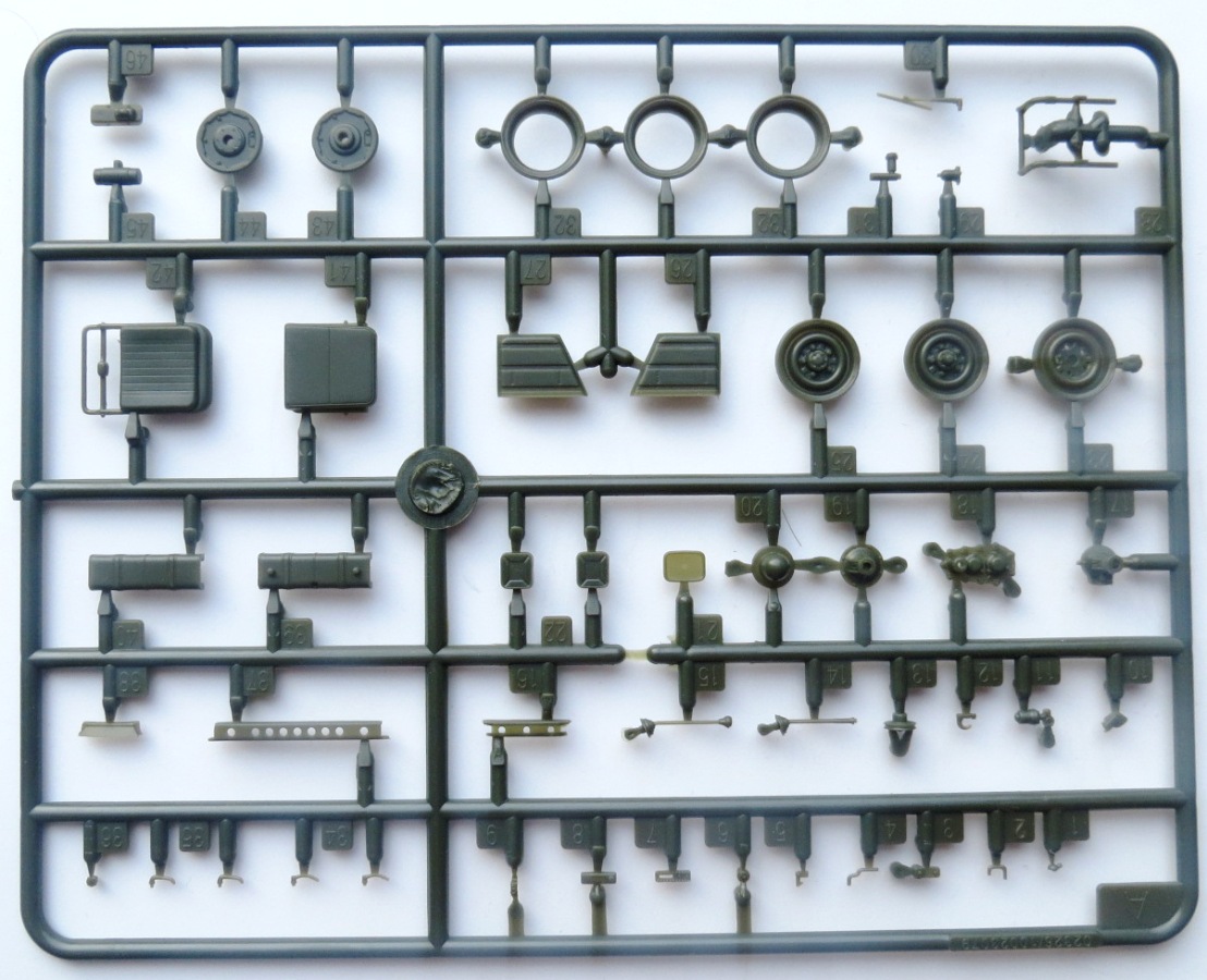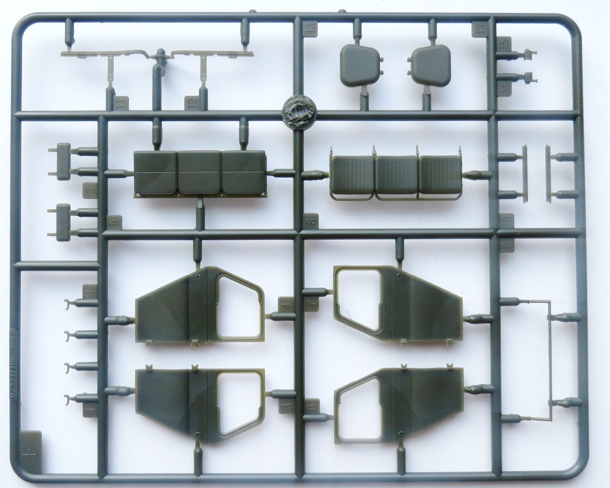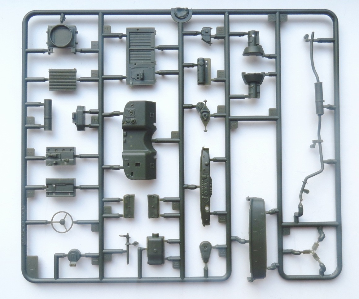 Проработанный интерьер кабины с управлением, печкой, радиостанцией, сборными сиденьями, кузов выполнен единой деталью, задний борт выполнен отдельной деталью, внутренняя обшивка дверей выполнена отдельными деталями, двери выполнены отдельными деталями и на выбор открыты или закрыты.
