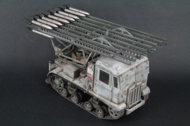 Честно говоря, по сравнению с другими Вашими работами. эта не глянулась. Камо, как уже указали, слишком блёклый, издалека кажется, что модель вообще серая.ИСМовская пусковая позднего типа (1944 года) - уже "нормализованная", на битву под Москвой никак не тянет.