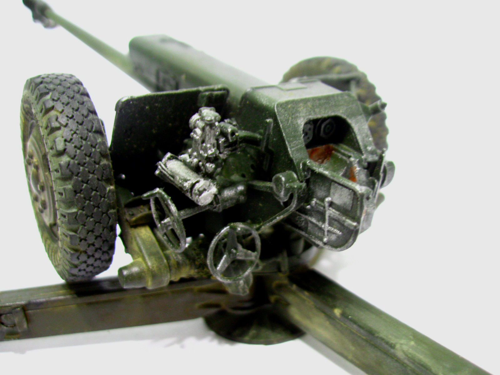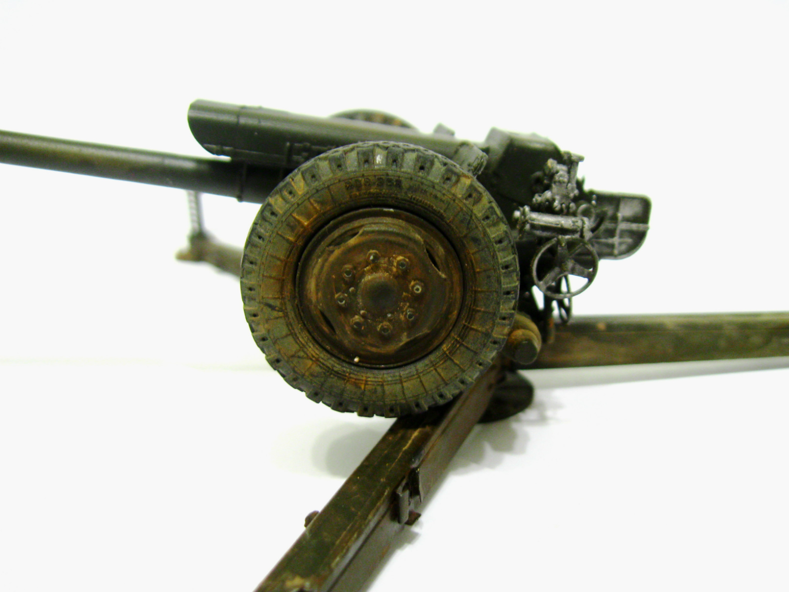 Пётр, начну с "+": видно желание и стремление сделать достойную модель. Применённые краски, "химии" и т.п. показывают, что для вас это не первая модель. Если смотреть чуть издали - запыление и загрязнение к месту и вполне смотрится естественно. Но если смотреть сблизи: "наружу" выходят многие "косяки". Грязь к низу должна быть более "многочисленна" на станинах и нижнем станке. Сухая кисть на основе серебрянки на казённой части смотрится неестественно (хаотично)- в виде мазков; прицельные приспособления просто серебрянные, что не соответствует действительности, контрольные площадки - наоборот, зелёные. Видно, что автор слабо работал (или не работал) с матчастью, хотя бы и виде фотоматериалов с инета. По технологии: ЯВНО не хватает тонировки, не хватает рельефа. Фото - местами не резкие, некоторые по смыслу повторяется (последняя и предпоследняя), к тому же некоторые просто "ни о чём"; перевёрнутая гаубица, даже если это модель - вообще нонсенс: ничего не говорит о покраске и структуре "нижней части" - это не БТТ. Положение, когда ствол между двух станин, редкое явление; можно было показать, что это гаубица и поднять ствол повыше 15-00 - было бы эффектней. Удачи