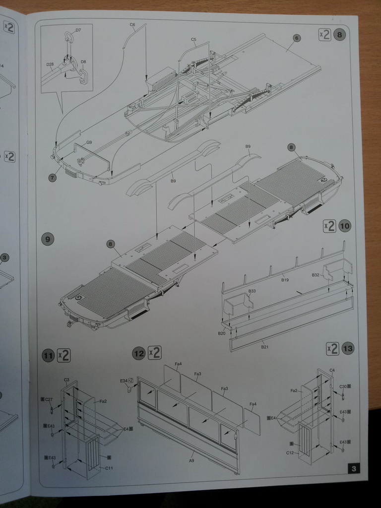 привет всем. собрал такой трамвайчик. поставил на основание, предварительно залив его гипсом изнутри( потому как основание из тонкого пластика, прогибается) рельсы сделал из старых Piko, смотрится просто пррелесть, модель конечно на всоте. деталей много, работы много и надолго, что очень люблю. но!!! некоторые тонкие детали- поручни, решеточки весьма хрупкие и пристыкованы к литникам не совсем удачно , на мой взгнляд, при отделении ломаются пополам. и еще- в инструкции есть пару опечаток. то бишь изображена деталь, а номер ее не соответствует литнику. например , деталь ( допустим, уже не помню) 44В, а на самом деле это 32 С, потому при сборке внимательно рассматривайте картинку и соответствие номера на литнике. ну и при покраске использховал краски акриловые, красил по мере выполнения внутреннего интерьера. всем удачи!(a_garbes@mail.ru)