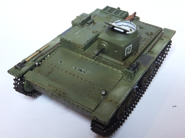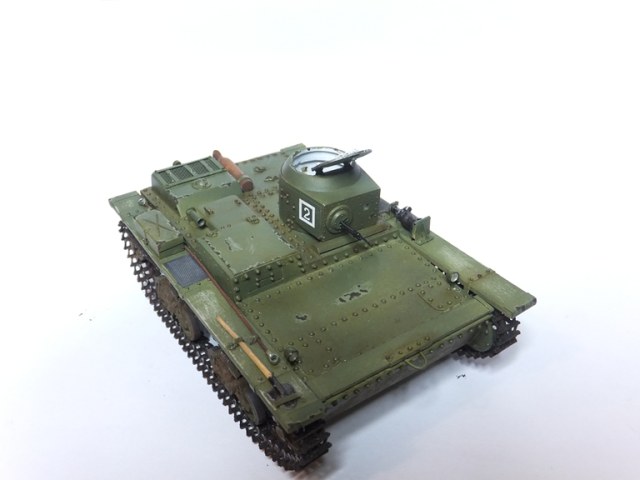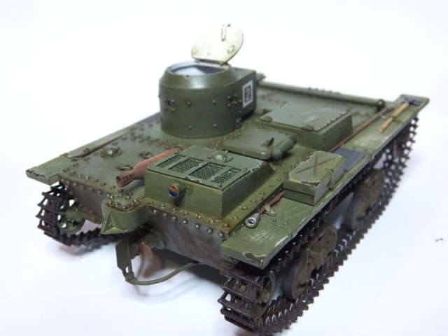 ...Понравился танк.Я бы добавил потёртостей и сколов.Насчёт щели между верхним листом брони и передним одолевают сомнения,было ли так? И это буксирное кольцо(?) приваривалось(приклёпывалось) на верхний лист.Смотрел на ю-тубе ролик подъёма такого танка,в котором колечко оборвали при попытке вытащить его тросом.