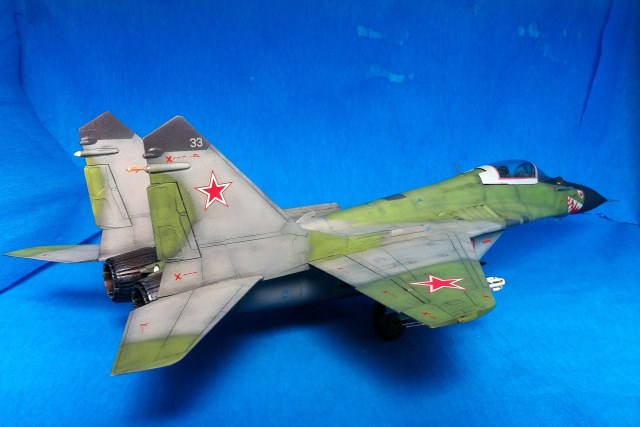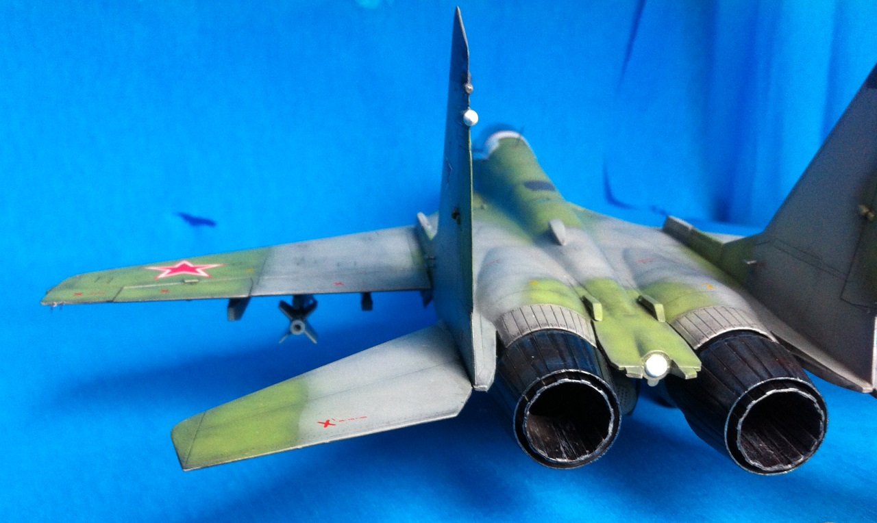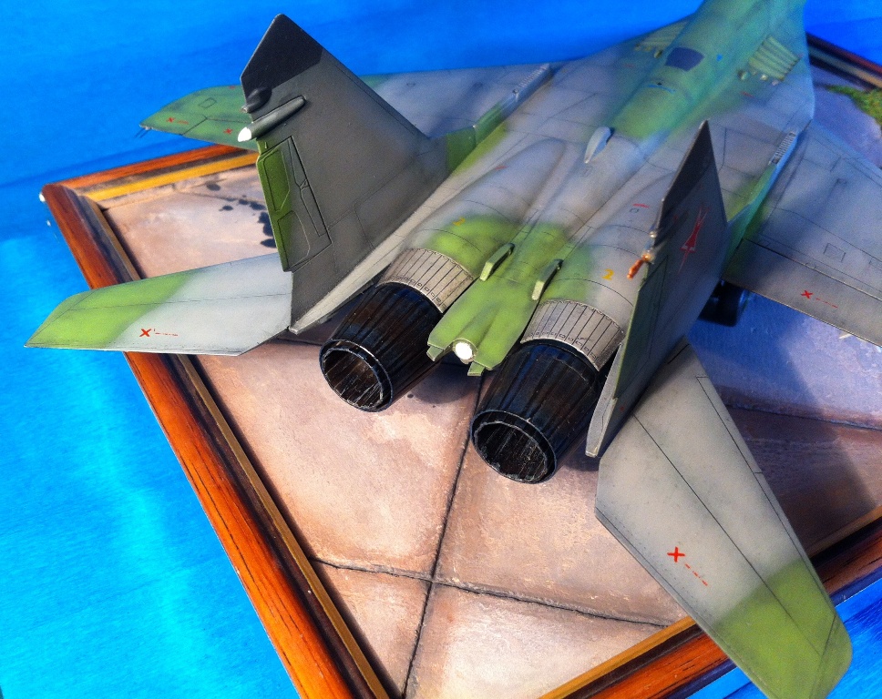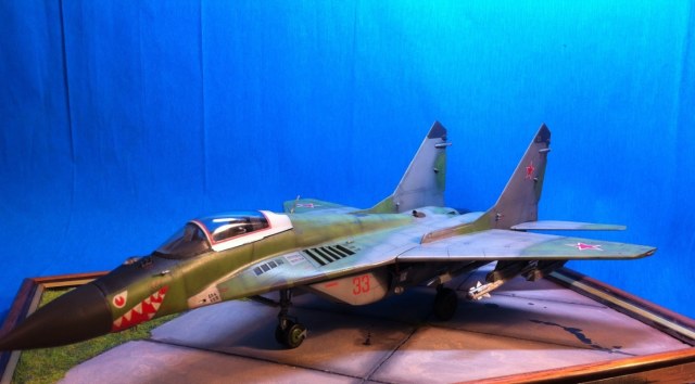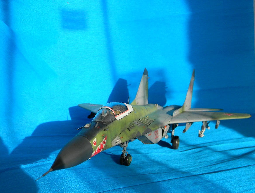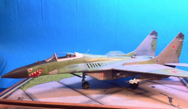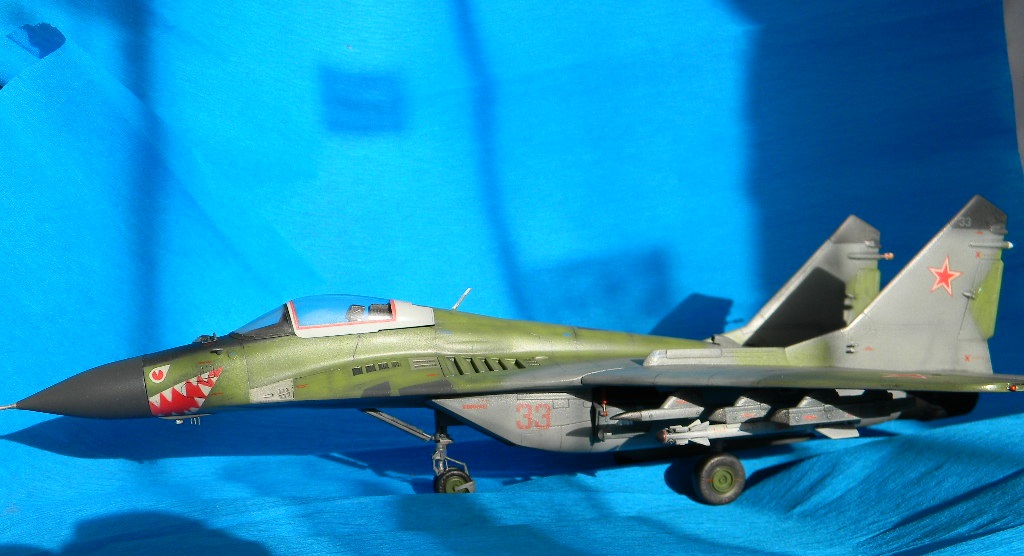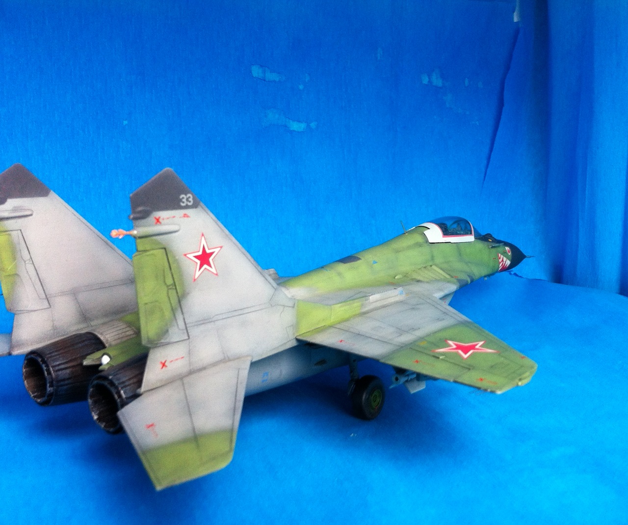 Хорошая модель. Был похожий МиГ в жизни, с "пастью", с белым фонарем, но немного другой модификации, без "гребней" перед килями, и с "пчелками" на них.