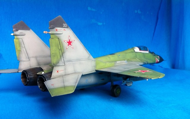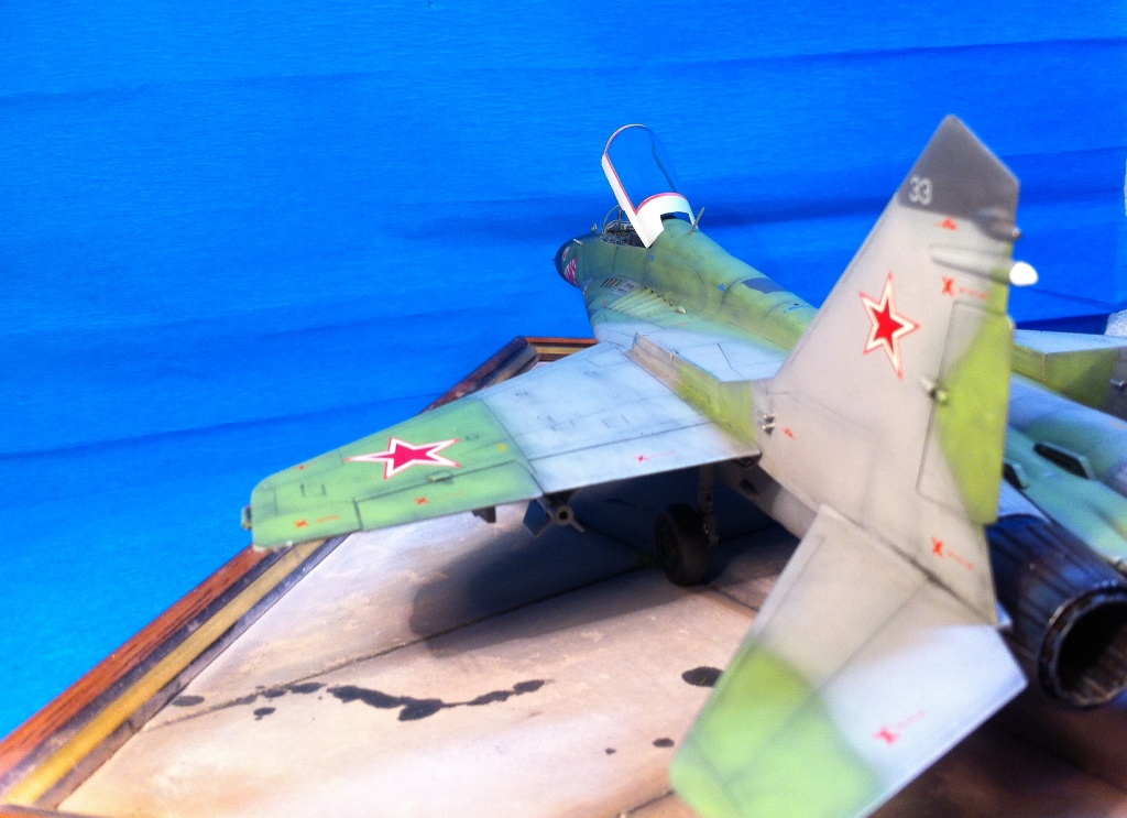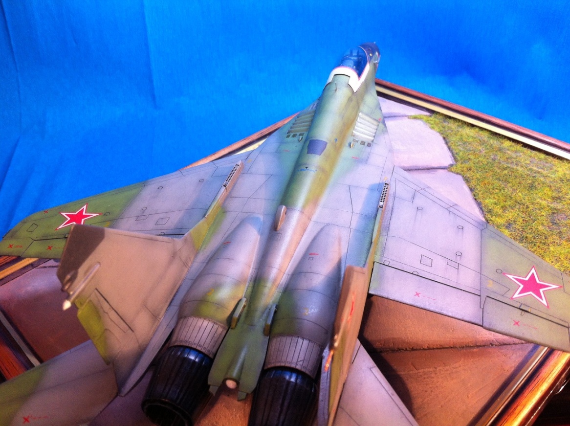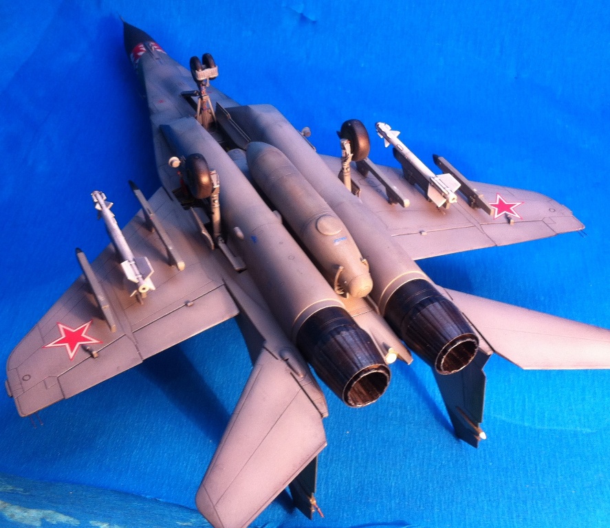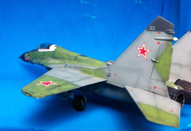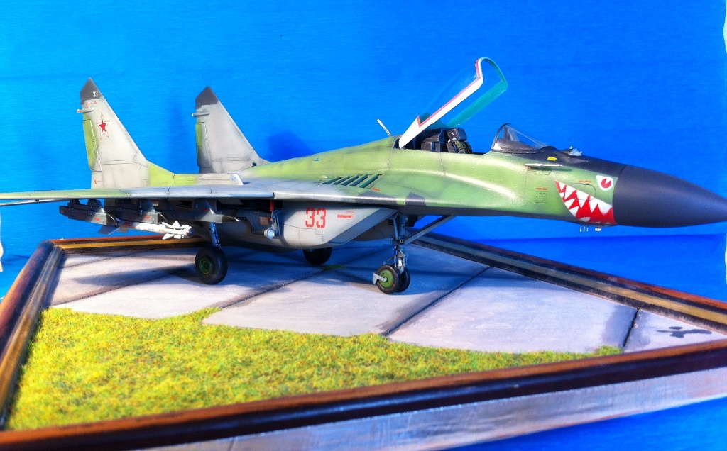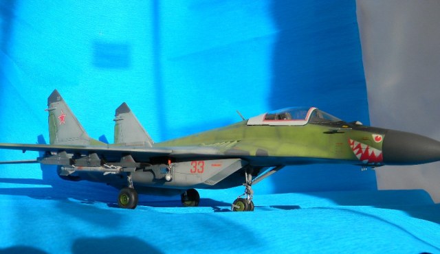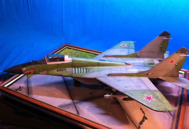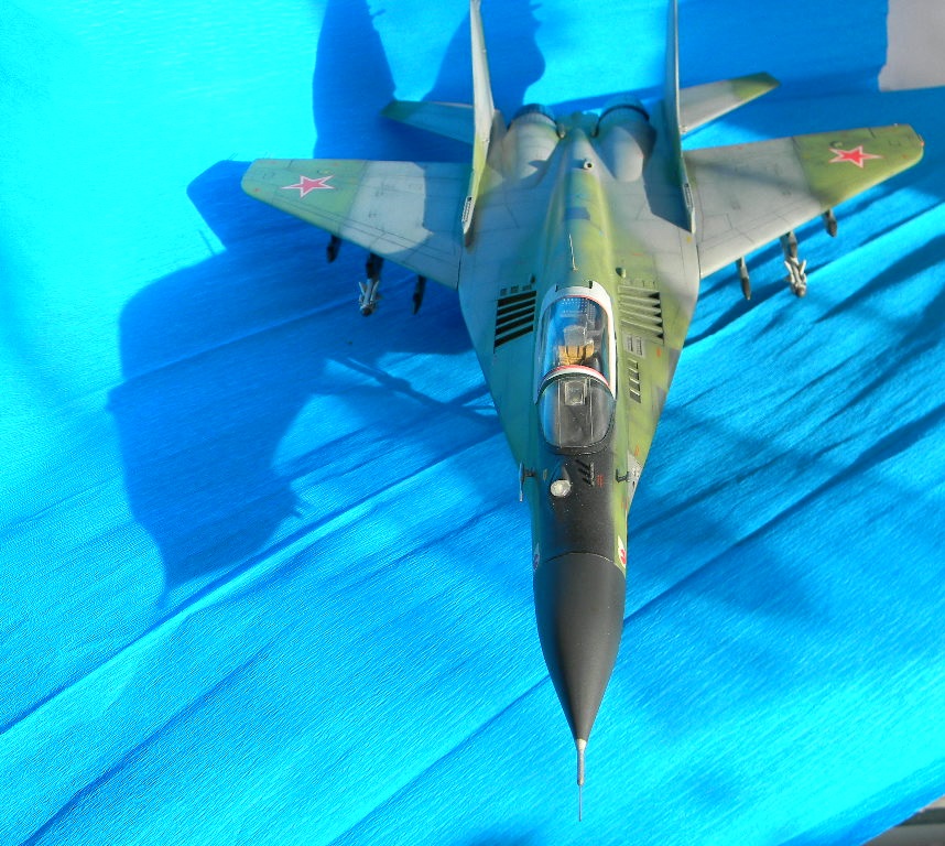 Хорошая модель. Был похожий МиГ в жизни, с "пастью", с белым фонарем, но немного другой модификации, без "гребней" перед килями, и с "пчелками" на них.