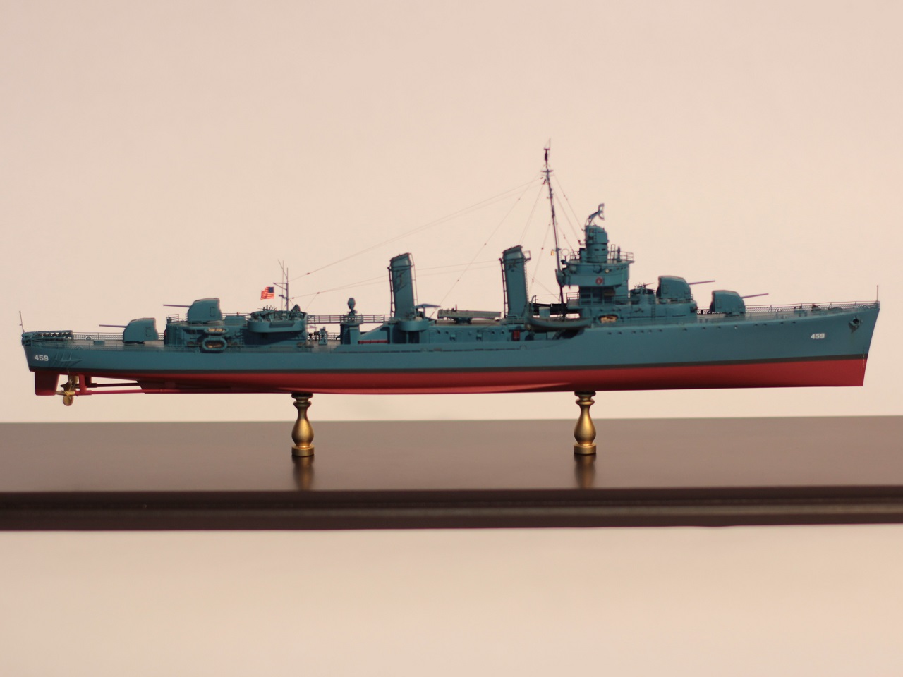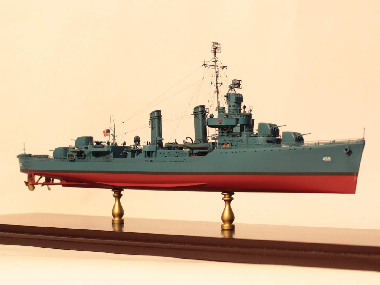 Модель собрана из набора Dragon с травлением GMM для эсминцев класса "Бенсон/Гливс". Никаких особых проблем с набором не было. Есть, конечно, некоторые моменты, которые я не стал править. Один из них - неправильная палуба кормовой надстройки, но из-за недостатка информации именно по Лаффи, она осталась в изкоробочном варианте.