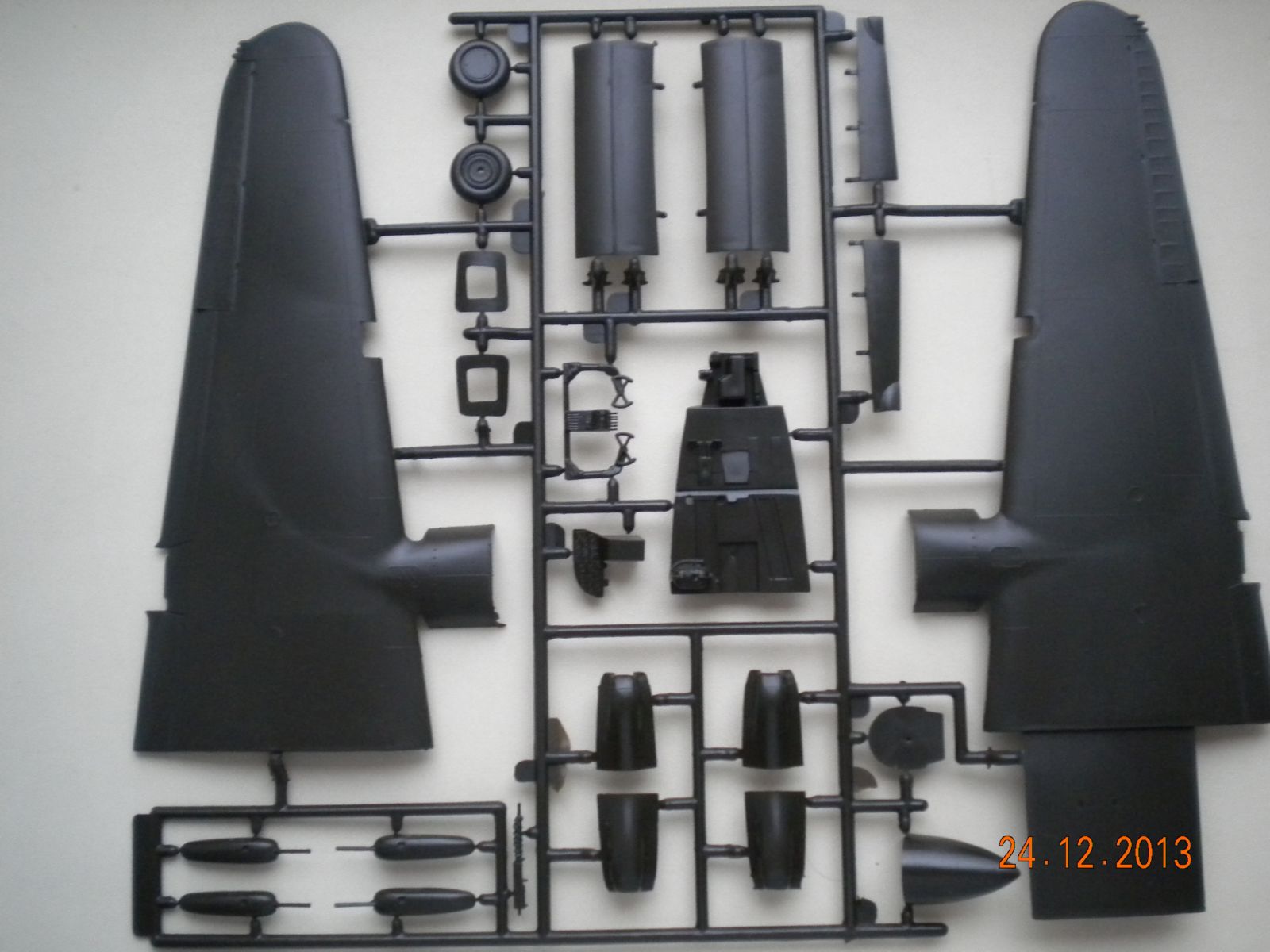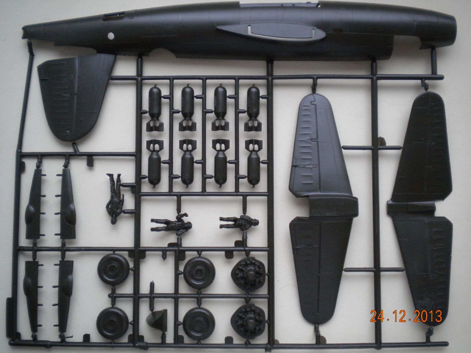 Пластик:имеет темный цвет,относительно мало облоя(можно так сказать его почти нету),детали проработаны очень хорошо,смещений нету никаких.Литьё очень понравилось,проработка достаточно хорошая.Особенно понравился кокпит и бомболюк(при небольшой доработки получиться просто загляденье). Единственное что;это расшивка внешняя,но на данный момент это легко устранимое препятствии.