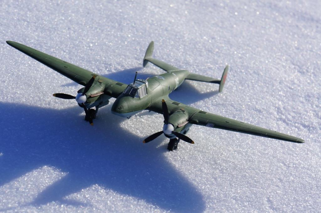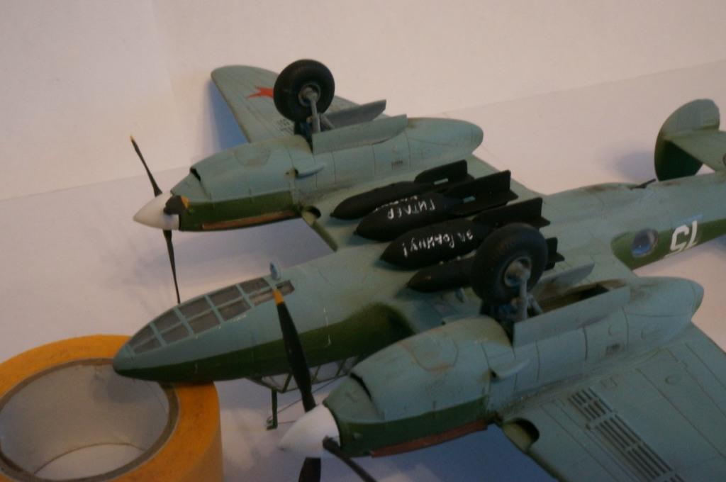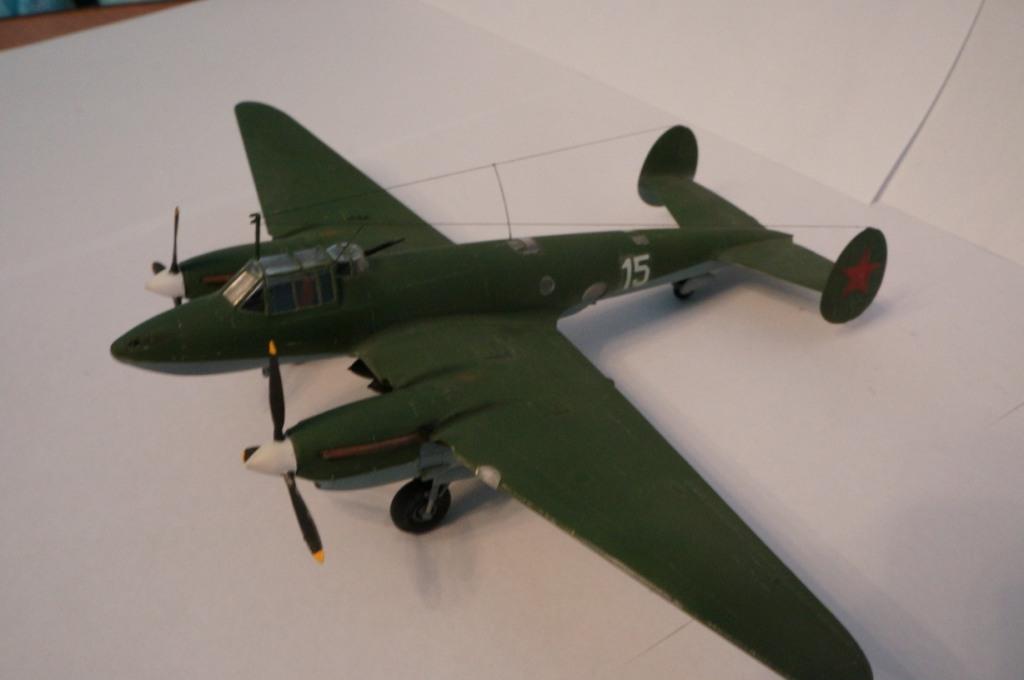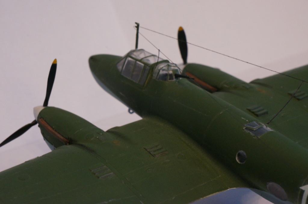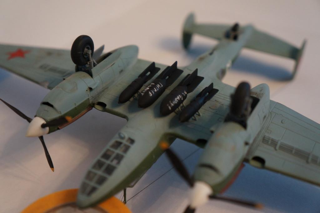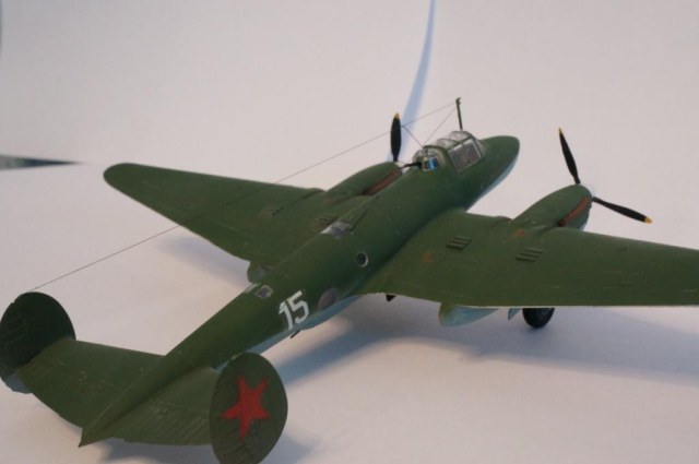Здравствуйте! Представляю на ваш суд Пе-2 от фирмы UM! Набор на мой взгляд не плохой,облоя практически нет,пластик хорошего качества, собираемость проблем не вызывает.Остекление прозрачное есть смысл проработать кабину хотя я это не сделал.Не понравилась довольно таки грубая расшивка и вариант декалей только для Финских ВВС, хотя набор позволяет собрать Пе-2 практически любой серии.Исторической привязки я не делал, схема окраски стандартная.Покраска аэрограф,краски "Звезда-супер",матовый лак,загрязнения пастель,антена из лески.