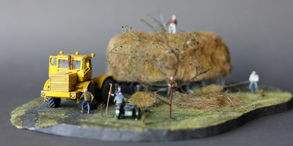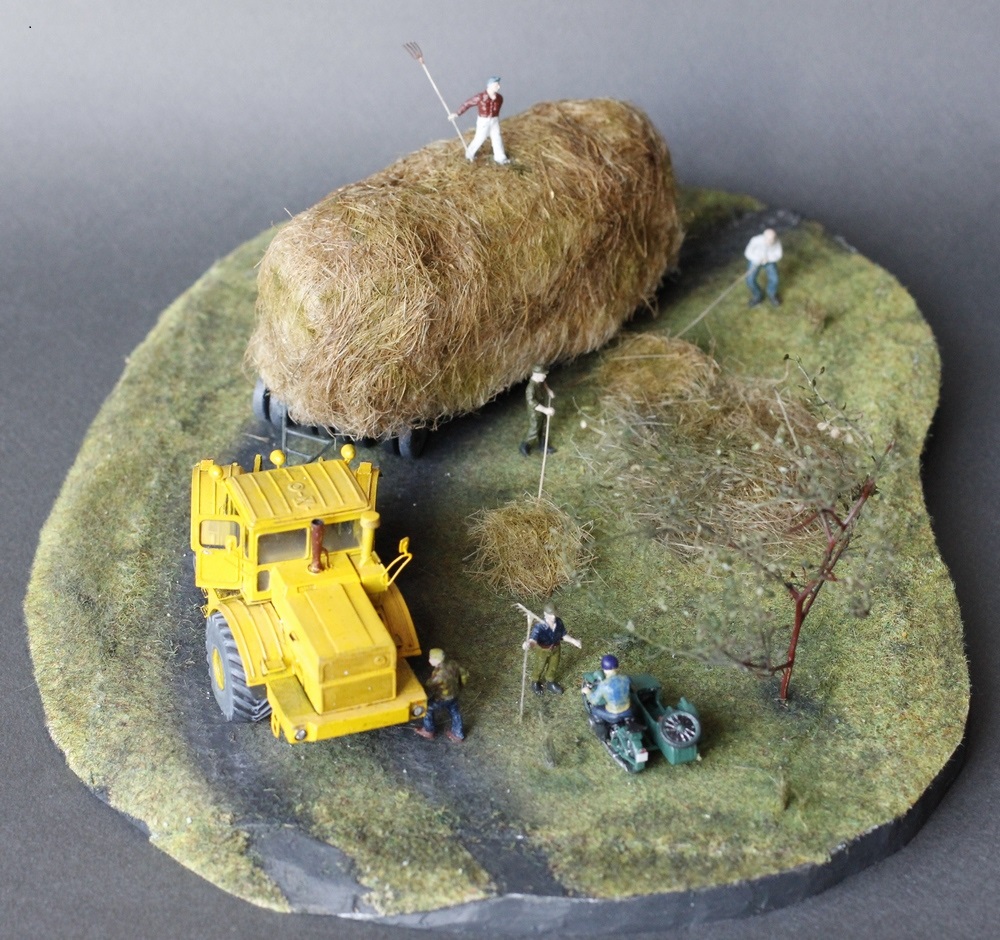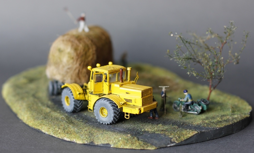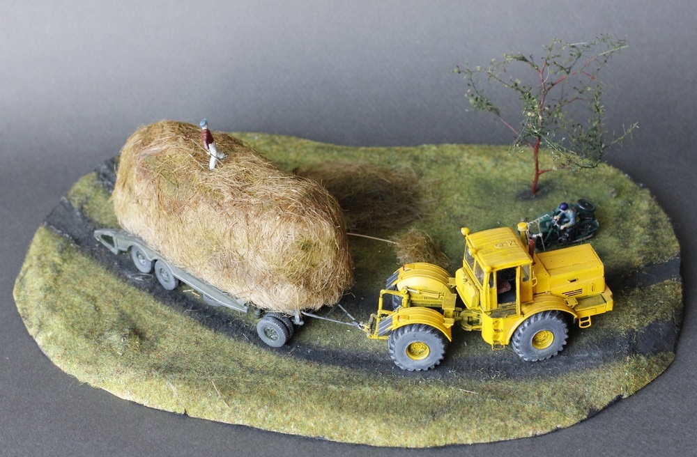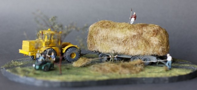 Отличная диорама.Я сам родом из села,так то могу смело сказать,что сюжет очень реалистичен.Да и исполнение отличное.Кстати.Раньше не сильно смотрели сколько топлива трактор кушает.Соляры было хоть залейся.У нас в колхозе даже замка на цистерне не было.Правда сено прицепами для соломы возили.Но тракторист с "кирововца" мог легко свой трактор использовать как тягач.