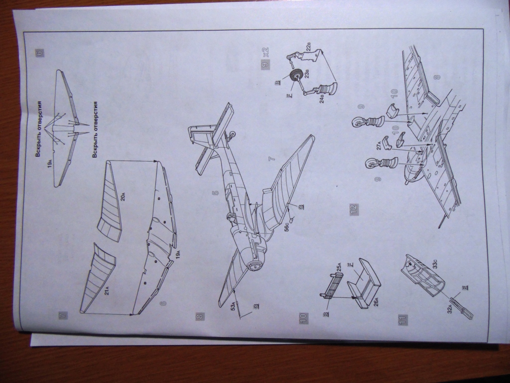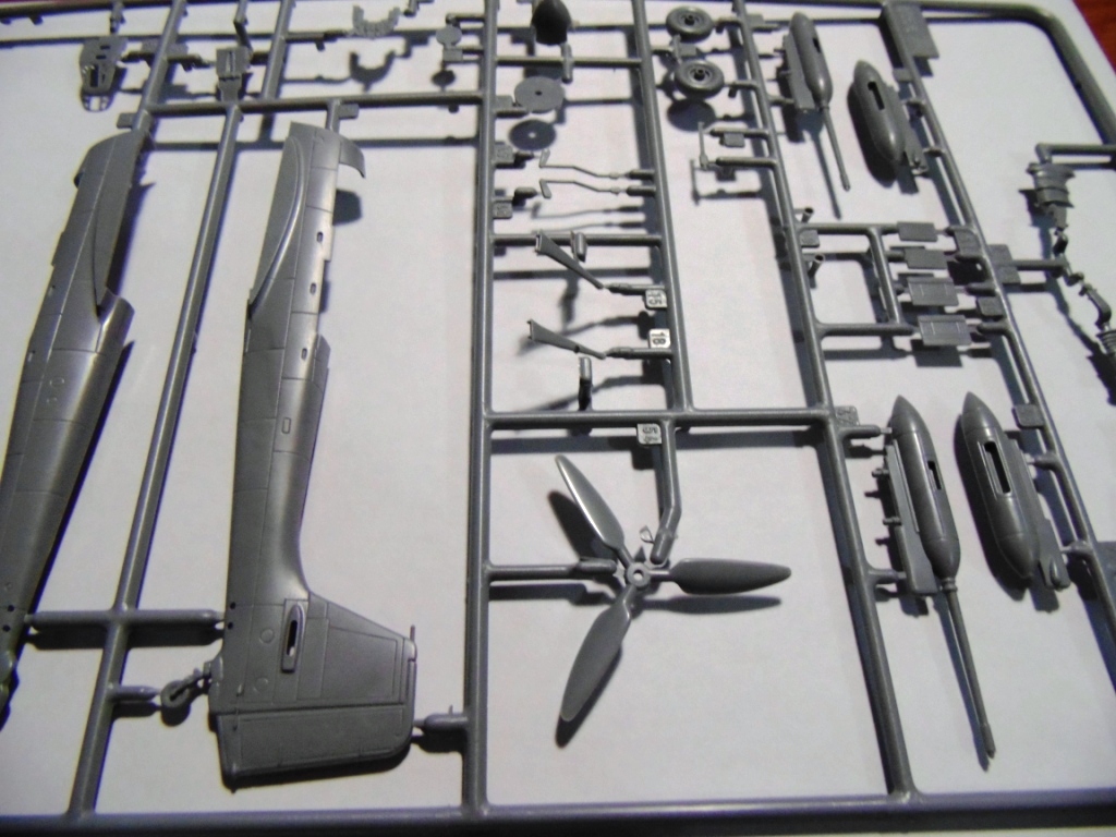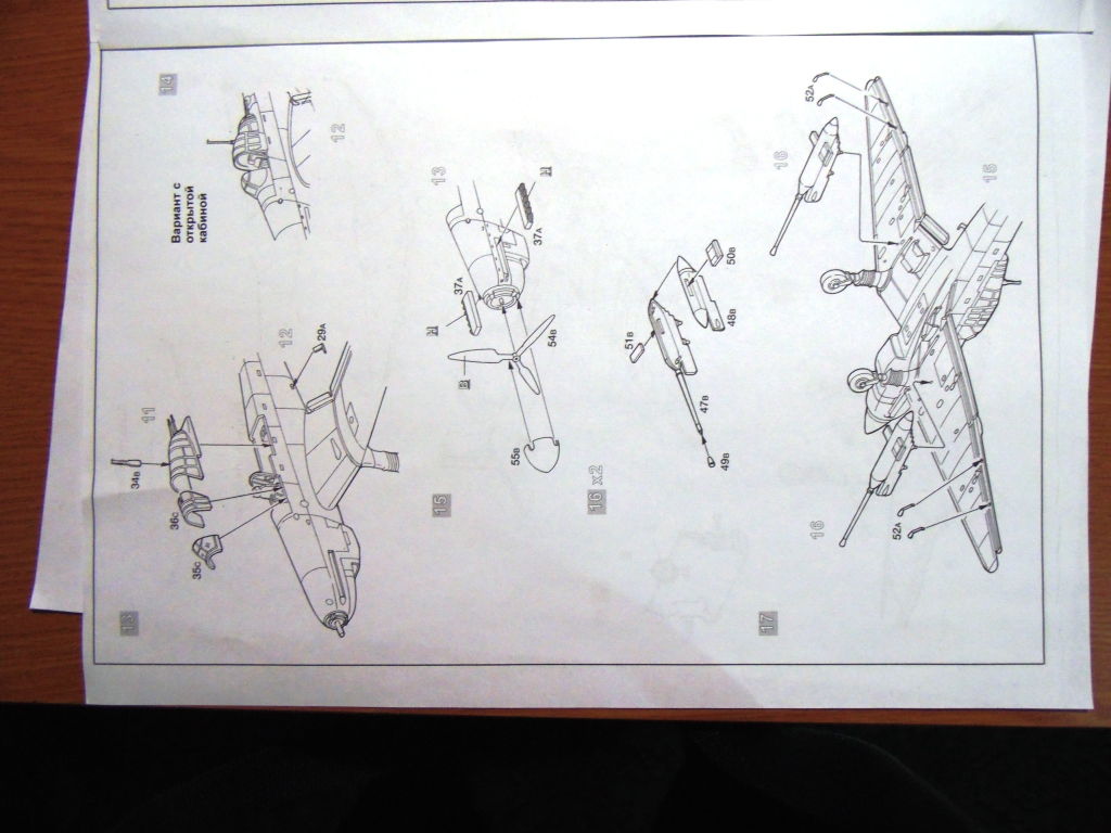 Собирается модель легко. Хотя кое-где все же пришлось и пошпаклевать. Облоя, утяжин, толкателей не много, но есть. Куда уж тут денешься то - Звезда. Расшивка четкая, глубокая, мне кажется даже слишком глубокая. Но, возможно, после грунтовки и покраски станет поменьше. Что не понравилось, плохое выделение переплета фонаря кабины. Клеить маски просто ужасно трудно. Удивило отсутствие "лаптей" на шасси. Но, покурив интернет, нашел фото военных лет без них. Значит все же правда.
