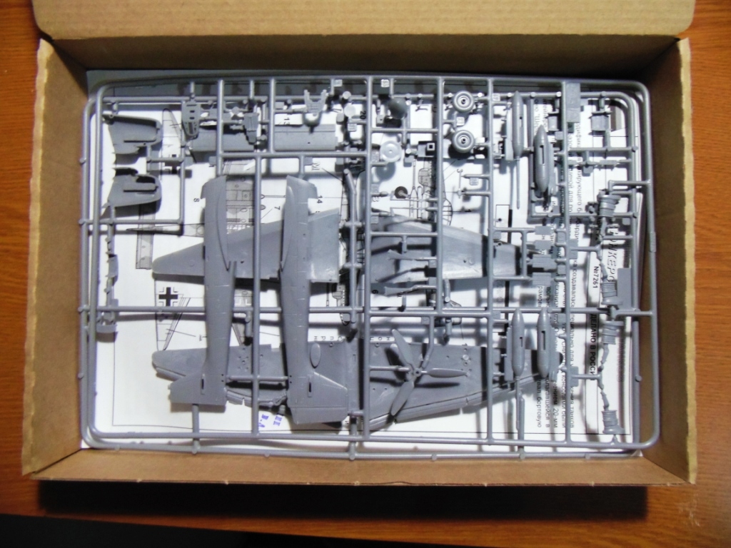 Теперь про сам кит. Куплет в местном магазине игрушек за 450 рублей. Довольно прочная двойная звездинская коробка. В ней три литника, в том числе и литник с прозрачными деталями. Декали. Инструкция по сборке, довольно таки подробная и понятная.