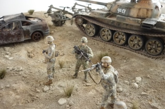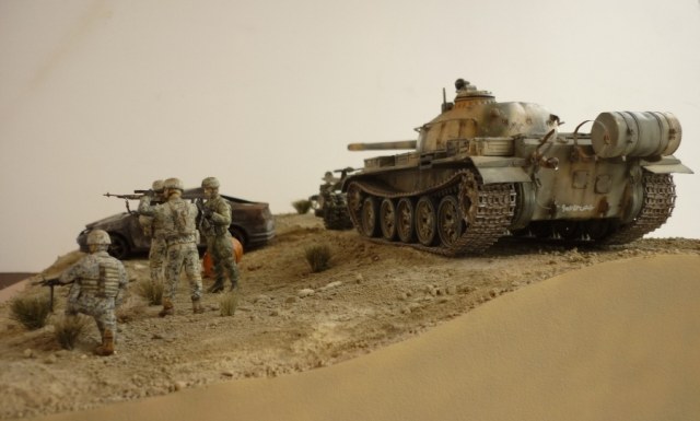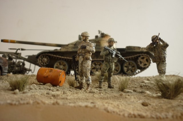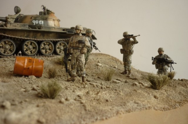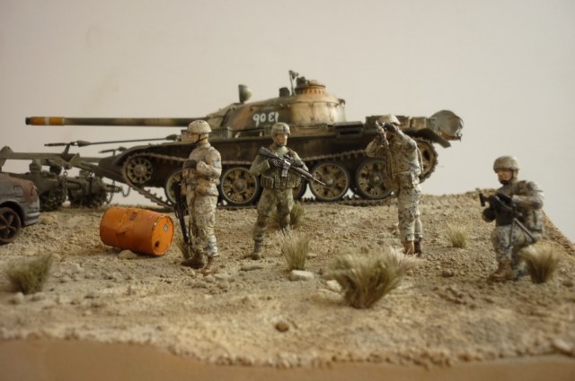 Мне лично все понравилось, вот только если иракский танк брошен, может стоило люки открыть?, двух бойцов, тех что с оптикой, и пулеметом оставить в том же направлении, мол прикрывают, а двоих, тех что свободно стоят, отправить на осмотр танка.