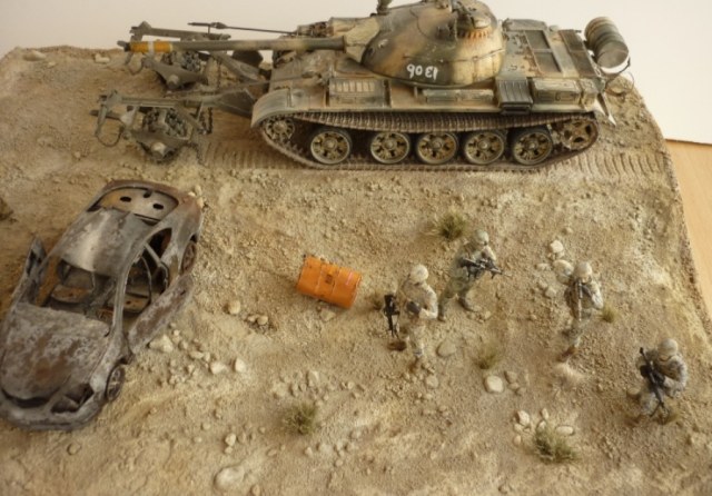 Машина горела но на грунте следов горения нет, пусть все занесло, унесло и т.д. но бочка с солдатами практически чистая. ИМХО роспись фигур не айс, сам камо и лица солдат желтоватые