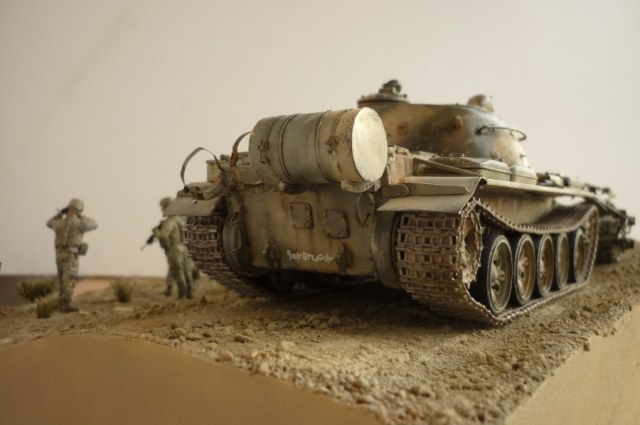 Доброе время суток! Ну вот! Наконец то закончил эту диораму и дошло дело до фоток для вас, коллеги! Делал ее долго, все работа мешала. Началось с покупки т-55 ну, а там как всегда захотелось вокруг него что то расставить, так и получилось это! По постройке по танку добавил немного травленки. Дымовые шашки самодельные.
