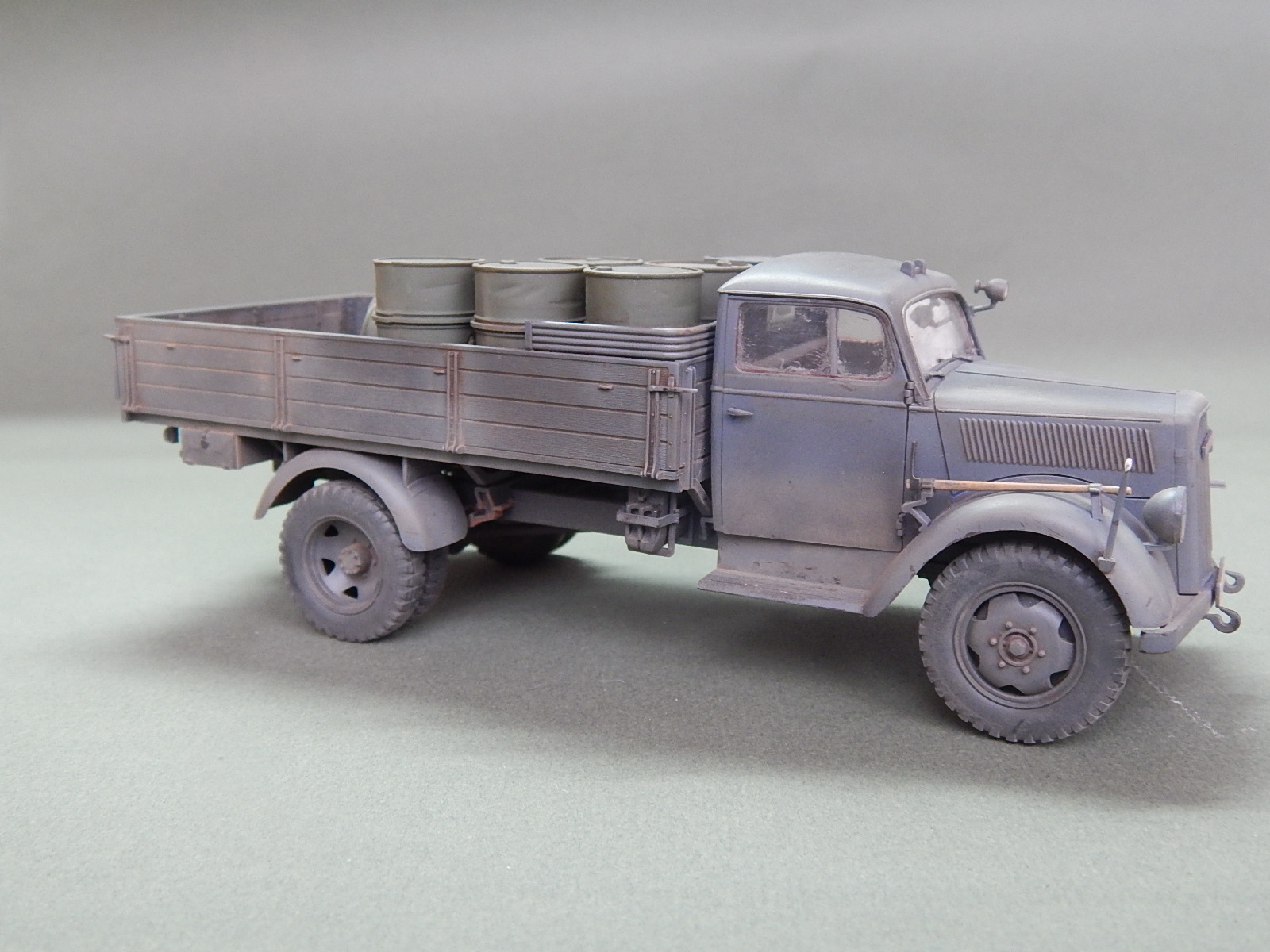 Модель понравилась, но по ощущениям в идеале родные стекла лучше заменить давлеными, мутноватые они вроде. Ну и стоило наверное металликом пройти по замкам кузова и ручкам канистр. А так понравилось, аккуратно.