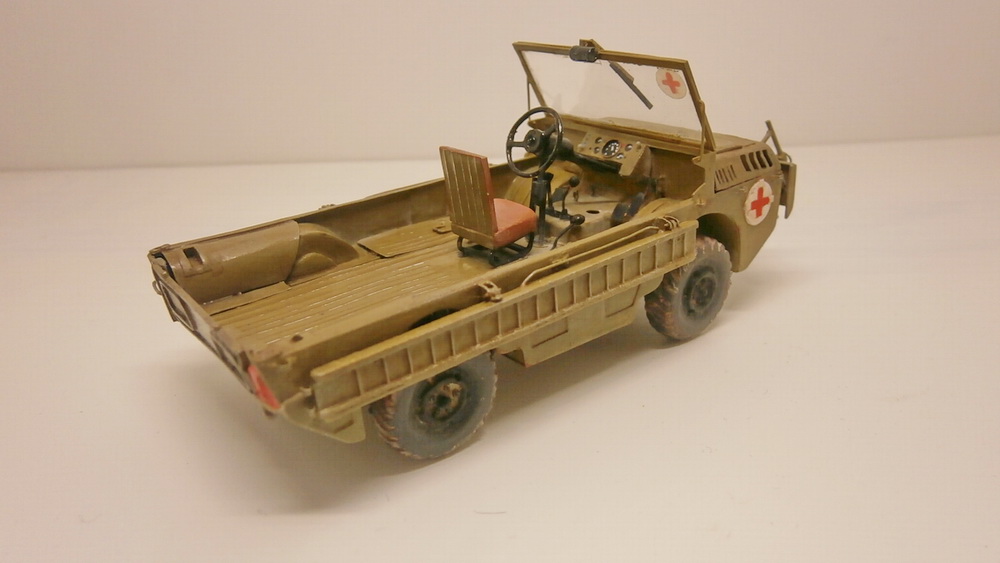 Колесная формула 4x4. полноприводный плавающий автомобиль-транспортёр особо малой грузоподъемности. Характерной особенностью автомобиля является откидная рулевая колонка, смонтированная, как и сиденье водителя, по центру машины. Такая конструкция рулевой колонки позволяет водителю при необходимости управлять автомобилем в полулежачем положении. Привод на задние включается для преодоления труднопроходимых участков. Есть также понижающая передача, возможна блокировка дифференциала заднего моста. Кроме того, для преодоления траншей и выхода из воды на неподготовленный берег ТПК снабжен легкосъемными металлическими трапами. Автомобиль преодолевает подъемы до 58%. Особенностью ТПК является движение по рекам и озерам. Корпус машины сделан водонепроницаемым, что обеспечивает достаточный запас плавучести. По воде ТПК движется благодаря гребному эффекту, создаваемому колесами. Место водителя в ТПК размещено посередине, а справа и слева с некоторым смещением назад – два утапливающихся в платформах сиденья для пассажиров. В сложенном состоянии их спинки находятся в одной плоскости с платформой, освобождая место для груза или двух раненых на носилках. Когда нужна скрытность передвижения на небольших расстояниях, водитель может управлять машиной полулежа. Рулевая колонка при этом опускается, спинка сиденья откидывается назад, а лобовое стекло – на капот двигателя. Щиток приборов, смонтированный на растяжках ступицы руля, в любом случае остается в поле зрения водителя.