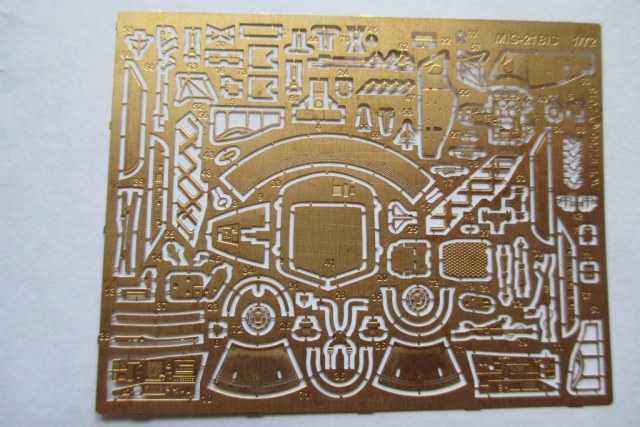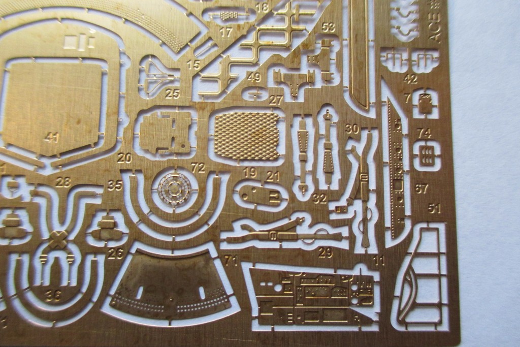 Всем привет. Поздравляю с наступившим Новым 2014 годом. Снова травление от фирмы АСЕ. В пакете присутствуют плата травления, пленка с панелью приборов и ч\б инструкция формата А4. Большая часть деталей дана для кокпита - ИЛС, передняя приборная панель, боковые панели, педали, привязные ремни на сиденье, имитация стеганной спинки сиденья, ручки катапульты. Если нет денег на смоляной кабинет то можно обойтись и таким дешевым вариантом, тем более что сквозь фонарь (если конечно делать его закрытым) мало что будет видно. Так же есть какая то накладка (прошу меня поправить если не так назвал) на носовой конус. Производитель предлагает слегка облагородить основные ниши шасси, щитки основных и передней ниш.Так же можно заменить заднюю часть блока НУРС. Присутствует N-ое количество разнообразных антенок. Не знаю как набор по копийности. Хочется услышать мнение профи. Прия тного просмотра.