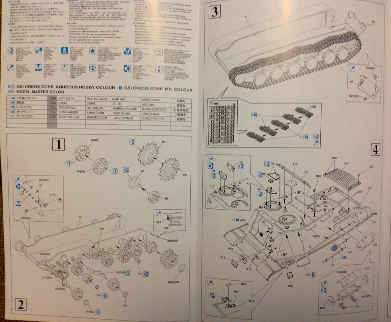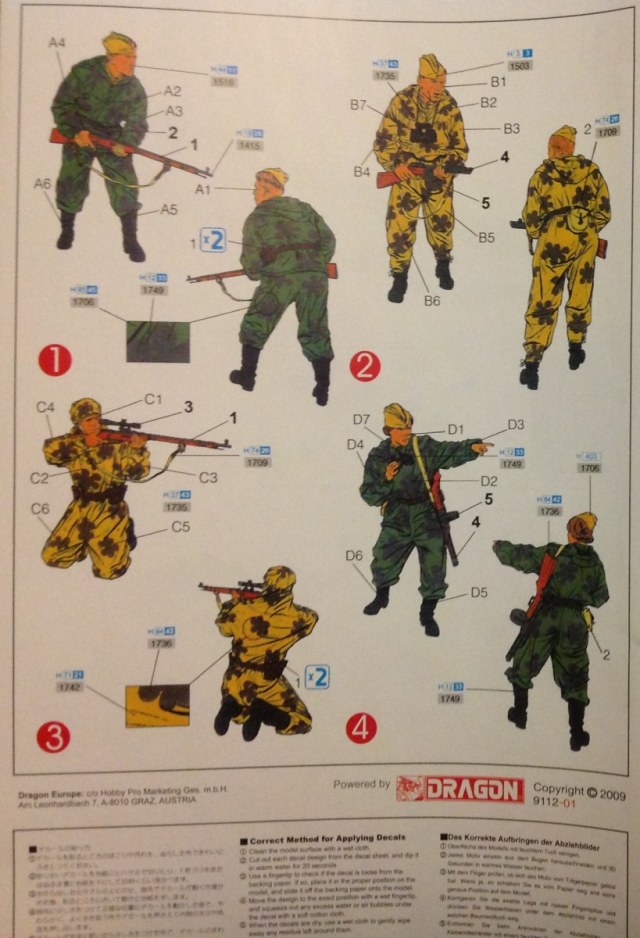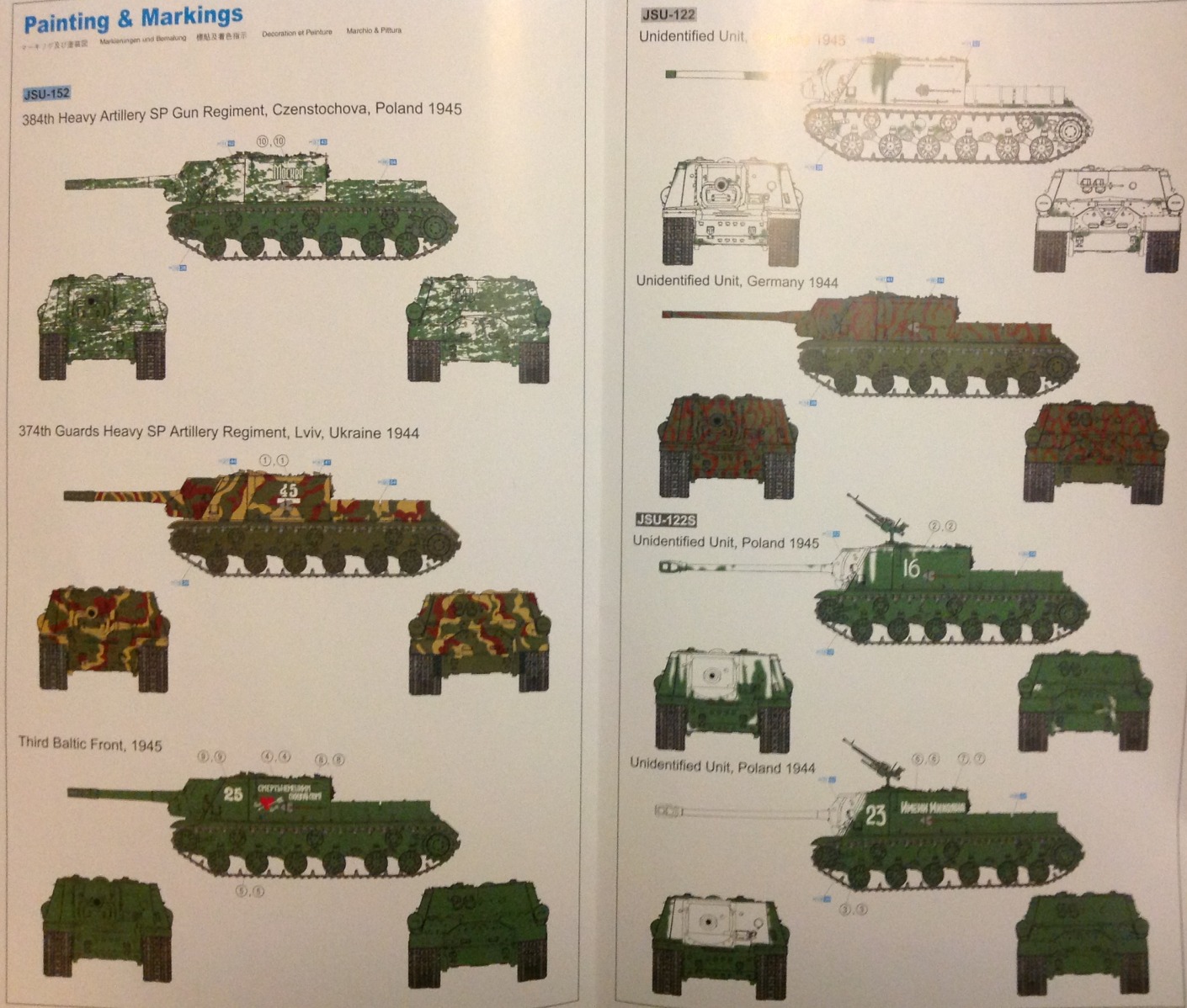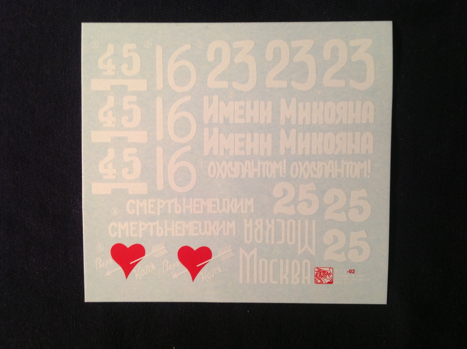 Имеется цветная инструкция, типа гармошки, с варианитами окраски для всех модификаций, а также декаль, на которой один из вариантов надписей дан с ошибкой: "Смерть немецким оккупантОм".