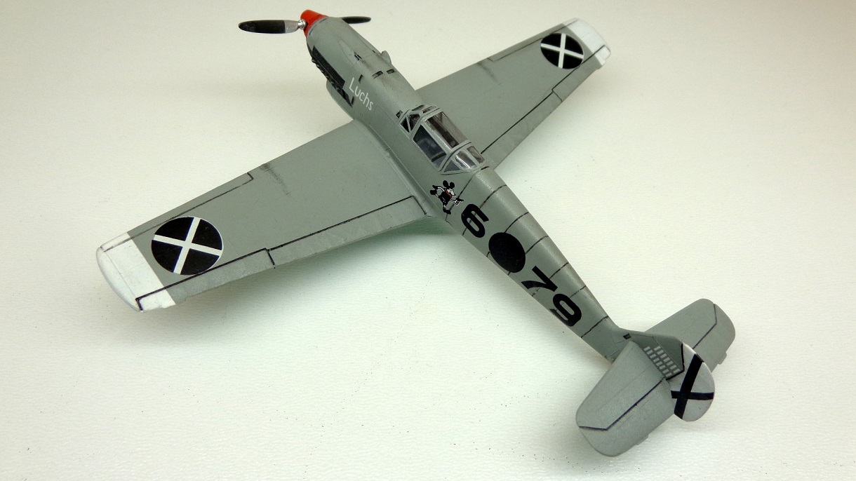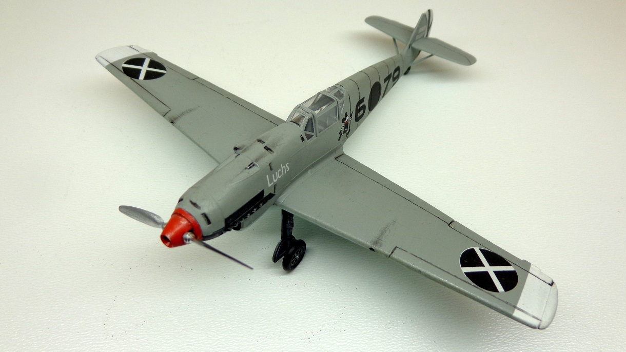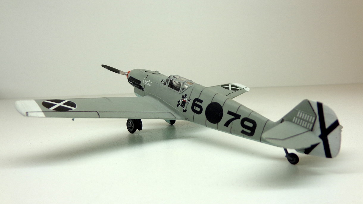 Когда то очень давно приобрел я деку от "Travers" на "мессеры". И если какие-то варианты от нее находили применение, то испанский вариант долго "мозолил" мне глаза. Наконец, полтора года назад увидел в коммиссионном отделе магазина Ме-109D от "Heller". Купил сразу же и склеил, немножко прорезал местами расшивку. Окрасил "Звездинскими" эмалями. Модель как бы представляет собой истребитель известного немецкого аса Вернера Мёльдерса во время его испанского дебюта (слава богу, что его "карьера" закончилась осенью 41-го и он не успел наделать много бед в русском небе).