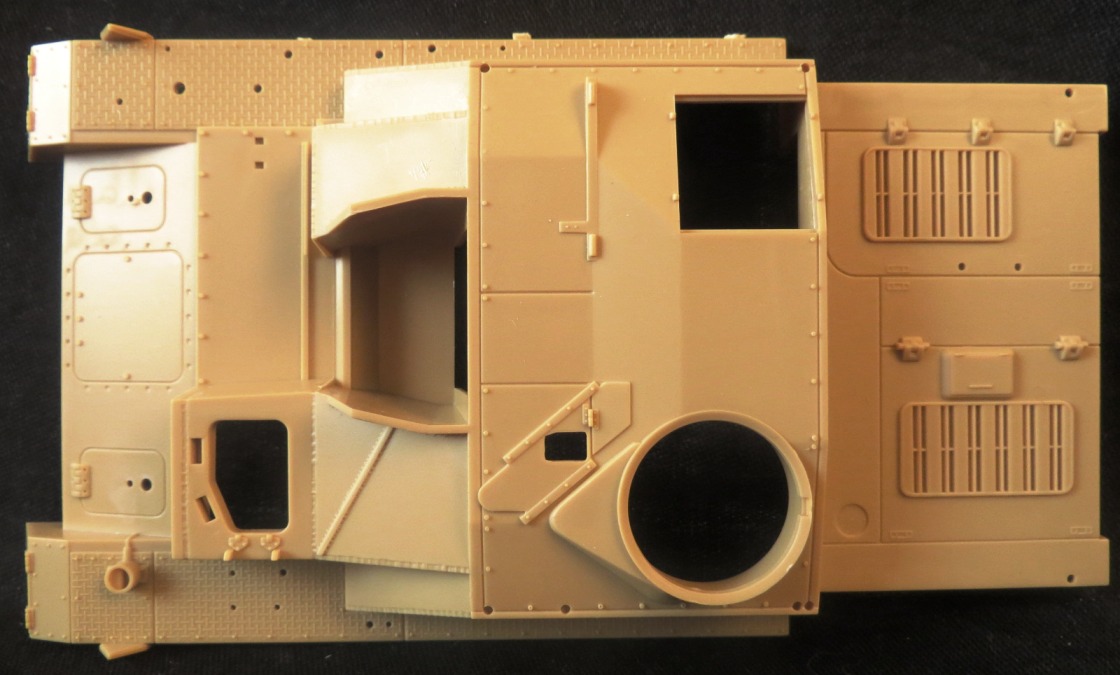 По набору - конструкция крепления/установки орудия в рубку крайне странная, навеянная неизвестно какими наркотиками. Пришлось переделывать, чтобы было более-менее нормально. Родные экраны толстенные, делал из латуни сам.