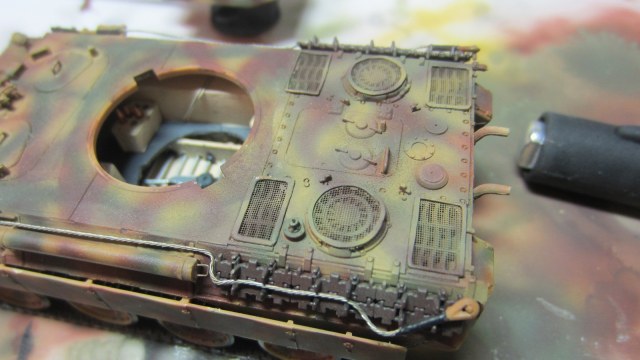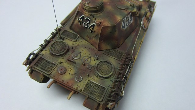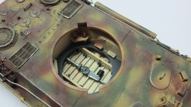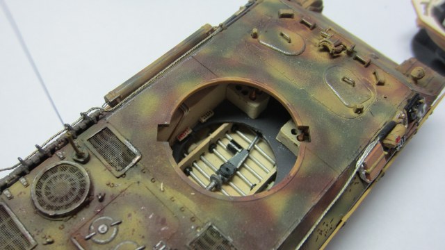 Итог: Башенка остеклена, сделан интерьер (разбирается башня и снимается вместе с поликом), добавлены всякие ручки из проволоки, заменены тросы на самодельные, изготовлена антенна, добавлены сеточки. Ну и собственно покраска.