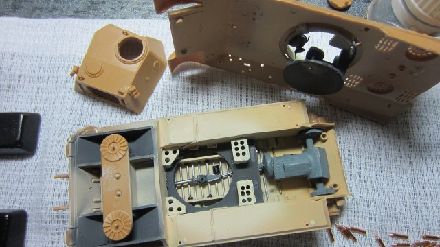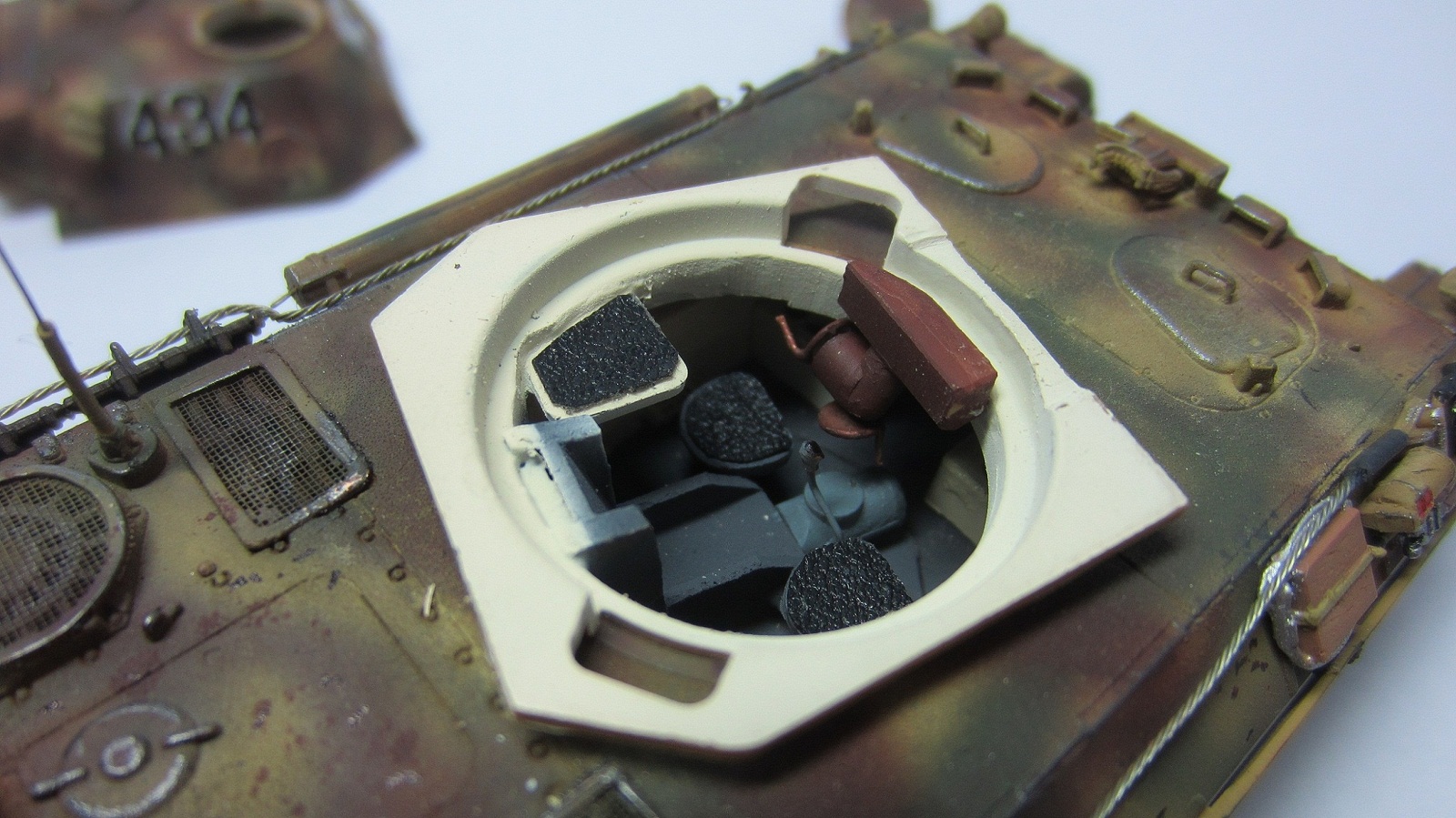 Модель покупал будучи в командировке в Москве, хотя сам я из Астрахани. Брал для того что бы попробовать нанесение сколов и ещё пары эффектов. Но при сборке остался неравнодушен к внутренней компоновке, поэтому ушёл в запил с внутренностями. Не обошлось конечно без косяков, пришлось немного порезать декали из за водостока над лючками на башне. А вот шов на командирском лючке остался из за того что там всё съёмное дабы показать интерьер.