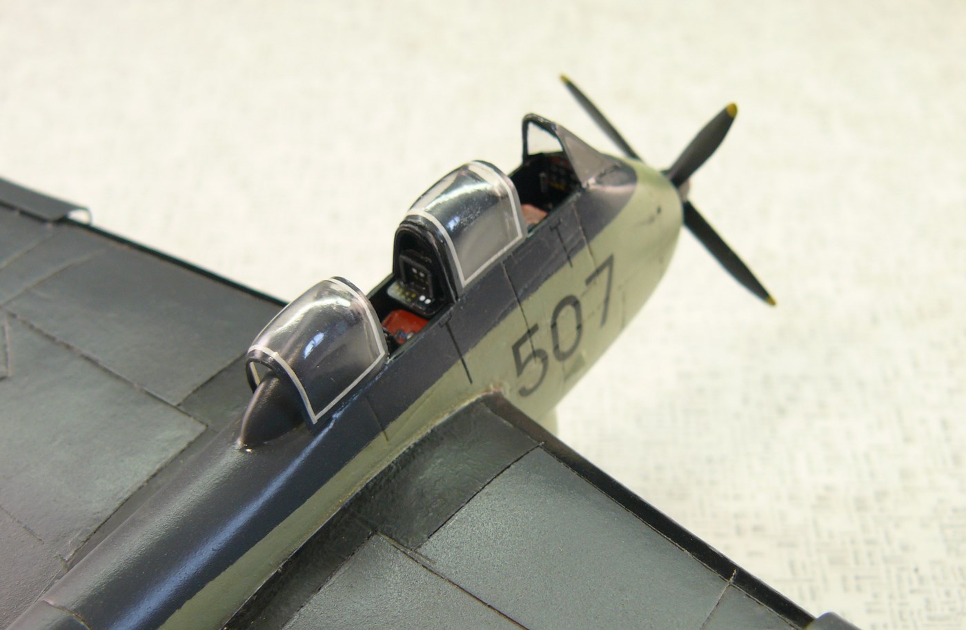 -что бы скрыть убогость фонаря, решил сделать его открытым, фонарь порезан на части, от него использованы закабинный гаргрот и 2 сдвижные части.