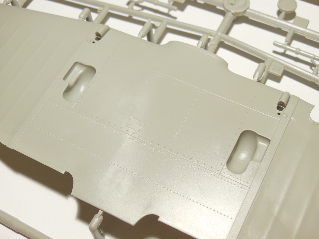 Об этой модели успел услышать только то, что она практически ни в одном месте не верна и лечению не поддается. Но на геометрию особого внимания обращать и не хотел. Для начала просто хочу собрать модель в новом для себя масштабе с небольшими доработками. Из того что в первую очередь бросилось в глаза, это присутствие множества следов толкателей в кабине, на креслах пилотов, далее как мне показалось выпуклая клепка на фюзеляже немного великовата и очень упрощенно сделаны шкалы топливомера на крыльях.