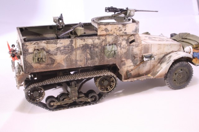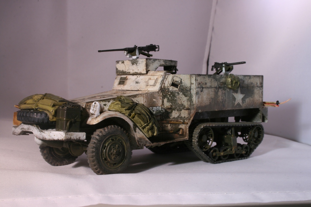 Мне модель понравилась, определённо! Прежде всего - весьма свежий взгляд на эту машину, да и вообще, в отличие от немецких полугусеничных машин, американские - не часто появляются в галереях, ХОТЯ - выпускаются на любой вкус: и транспортёры, и "носители миномётов", и с арт.системами, и зенитные...