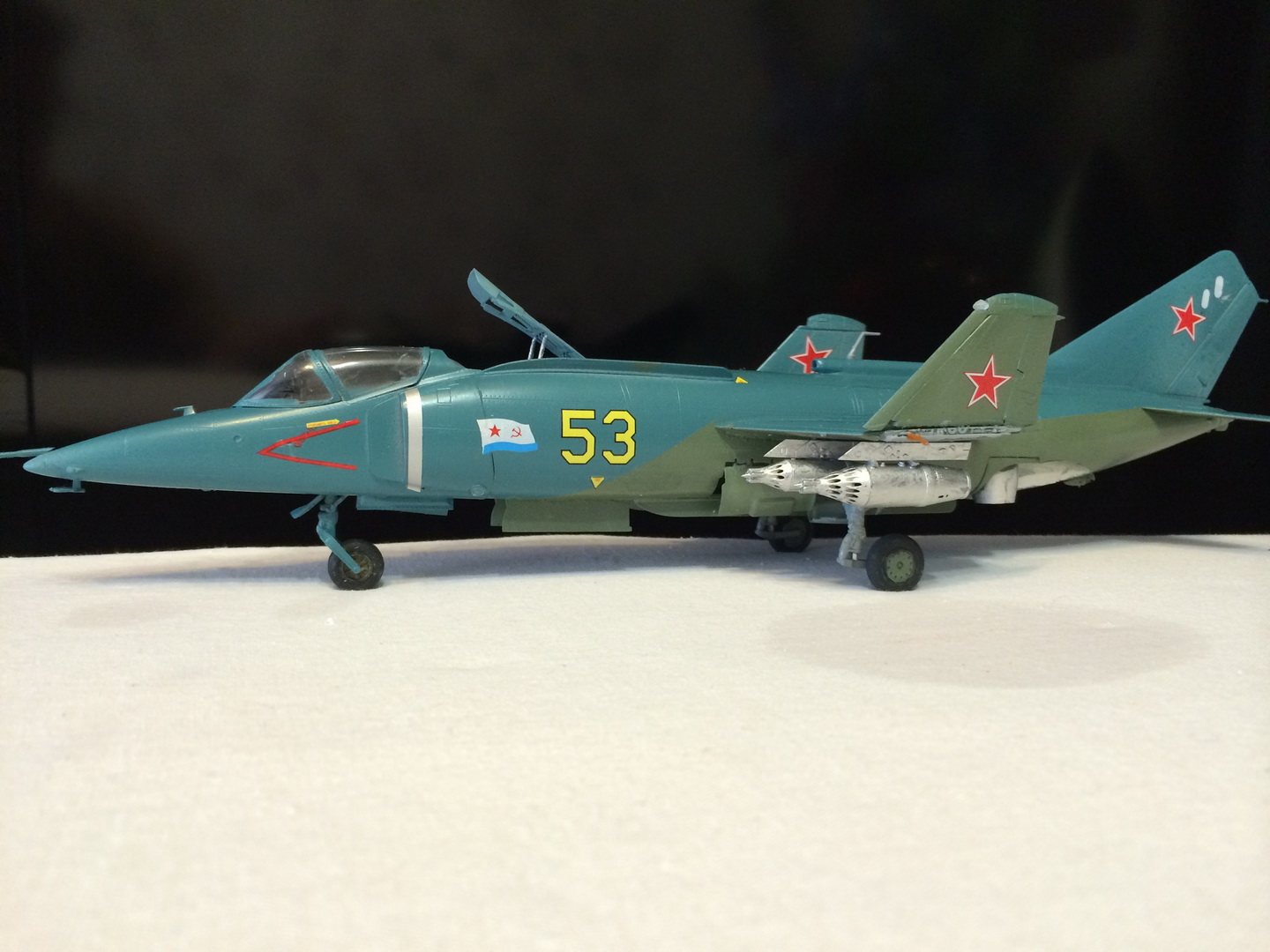 Модель неплохая,но законцовка киля(радиопрозрачная),имела другой цвет,во всяком случае на строевых!Передняя стойка, не видел по фотографиям,чтобы была синей..?