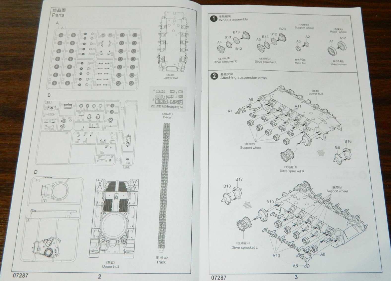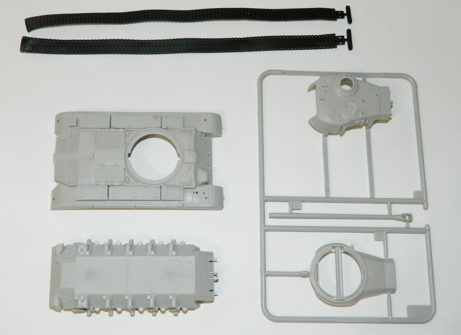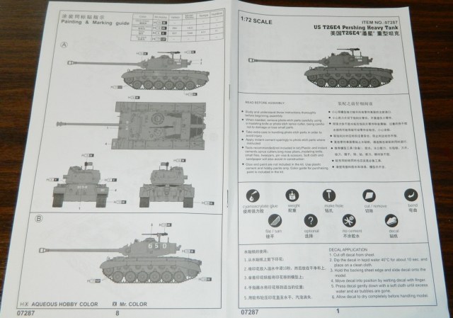 Предлагаю к обзору Pershing, коробка как всегда с хорошей типографией у данного производителя. Инструкция на 8-ми страницах, хорошо читаема и вполне понятна. Все расфасовано в пакетики. Литники отлиты с мелкими огрехами, но не критичны. Траки, как часто бывает у производителя, резиновые Модель приобреталась для эксперимента с последующей постройкой Super Pershing.