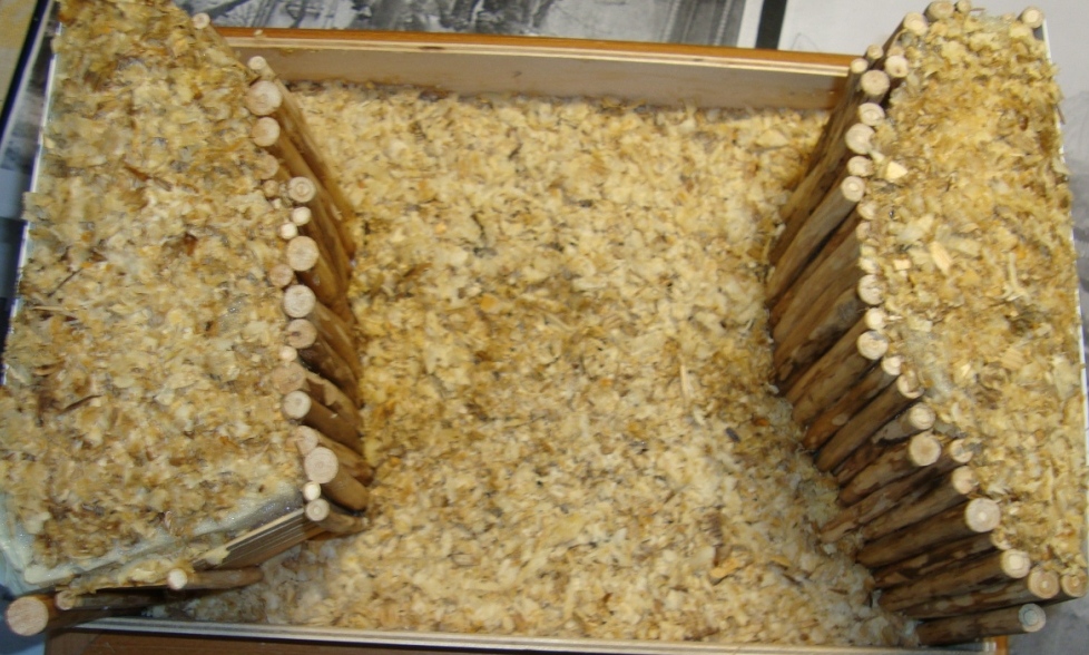 В строительстве использовались: монтажная пена, ветки деревьев, древесная стружка и опилки, фанера, картон, ПВА, шпаклевка по дереву, эпоксидный клей, акриловый клей Flex.