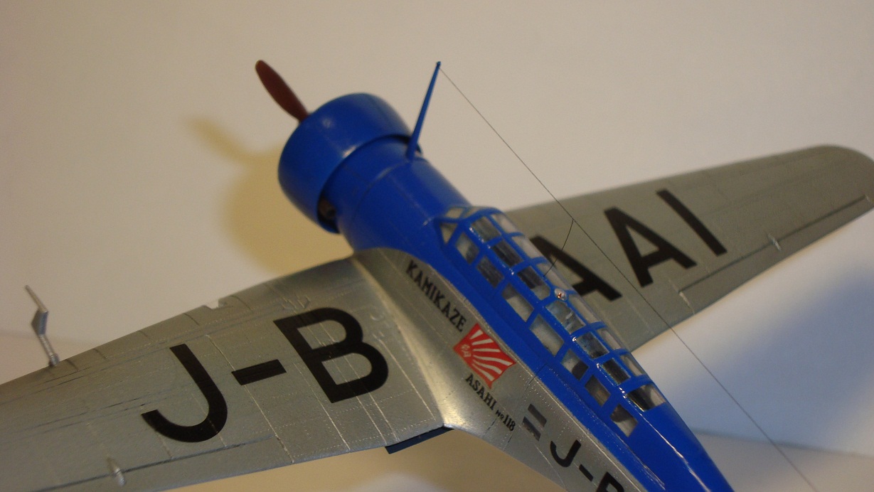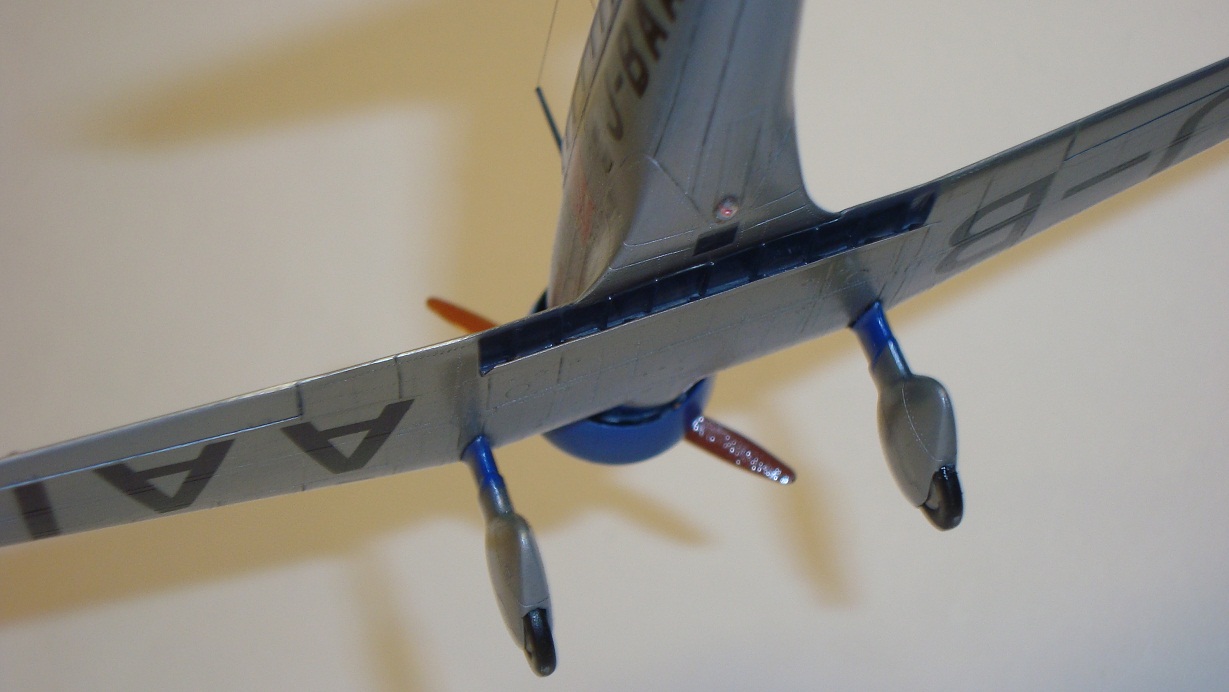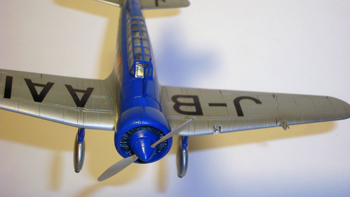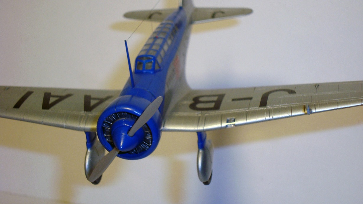 Молодца! Хороший аппарат! Абсолютно не в теме, чисто по фотке - капот точно синий был? Линию перехода по фюзеляжу ты спрямил, деки-надписи переразмерены - на родном помельче были (производитель-гад :-), родной ведь аппарат). В остальном смотрится отлично.