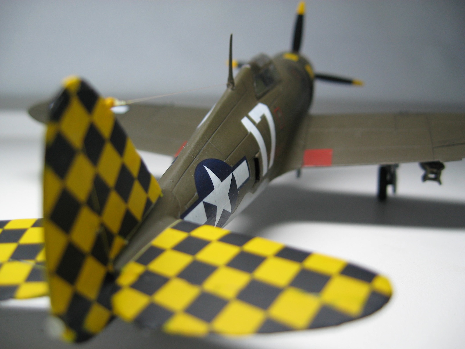 Работа вызвала двоякие чувства. С одной стороны, все красиво и аккуратно, с другой некоторая небрежность или неаккуратность. Нагар от пулеметов и брызги масла на капоте портят всю картину. Декали надо было аккуратно прорезать по линиям расшивки, щитки основных стоек шасси следовало сточить до масштабной толщины. В месте стыка антенны и киля излишки клея.