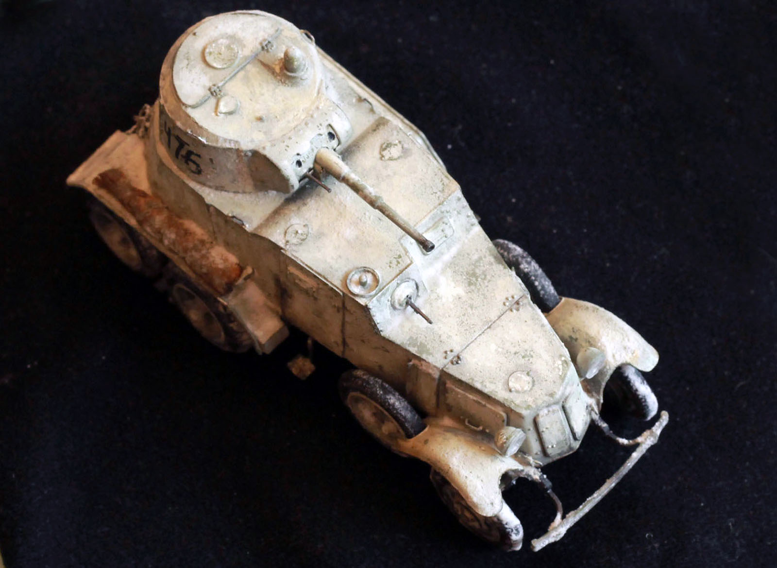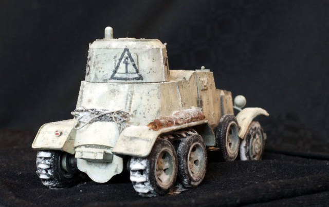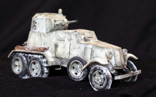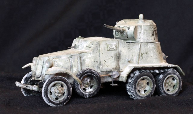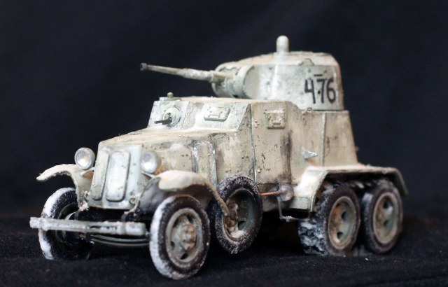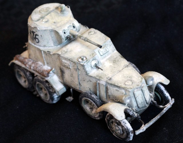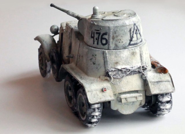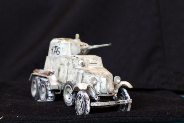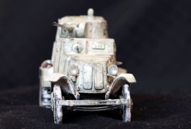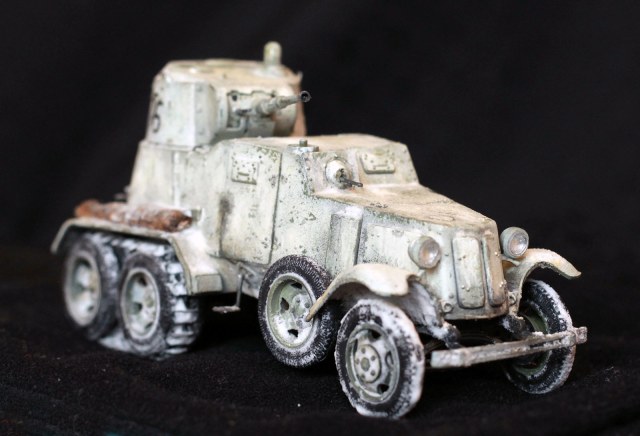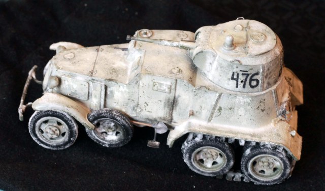 Качество деталей очень низкое: облой, нестыковки, одни и те же детали (обода колес) отличаются размером даже визуально! Начал собирать бронеавтомобиль, так как не хотел морочиться с гусеницами танков. В итоге за время, потраченное на подгонку и сборку только колес хватило бы на гусеницы пары танков. Про недостачу клёпок и некоторых деталей уже всем известно. Пулемётики из литников, родные очень убоги. Тем не менее, дорабатывать было интересно. И всё же, пытливый глаз сможет заметить немало несоответствий. Окрасить попытаюсь в зимний камуфляж.