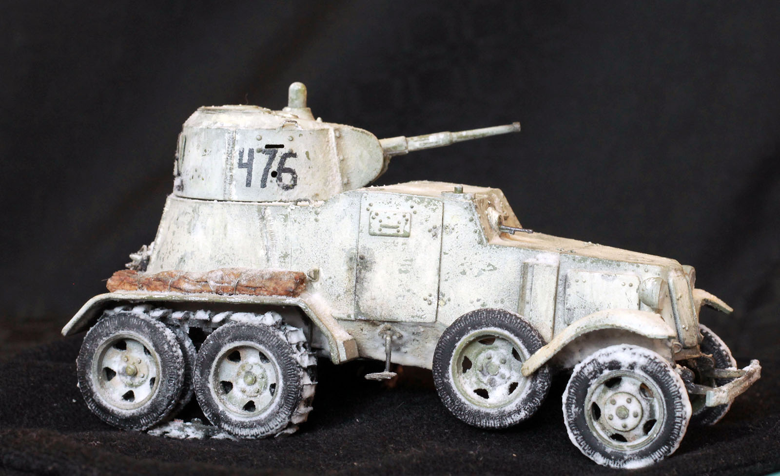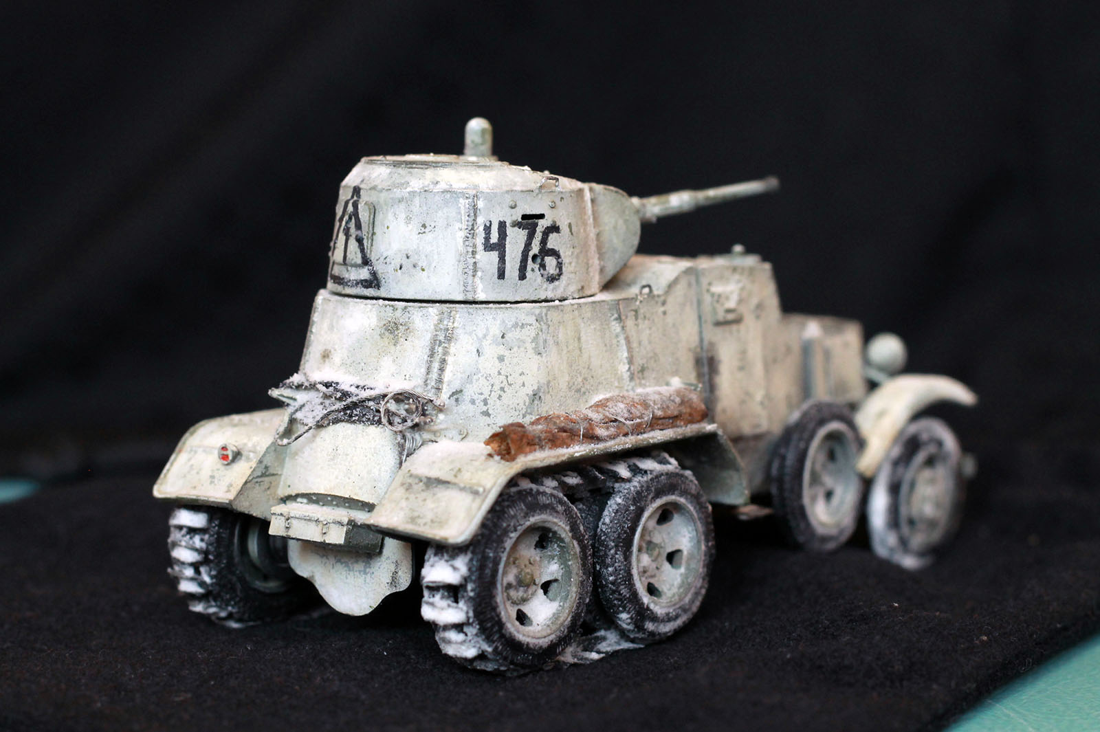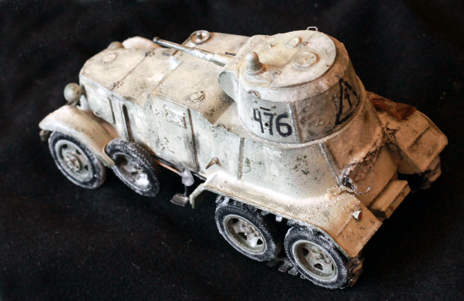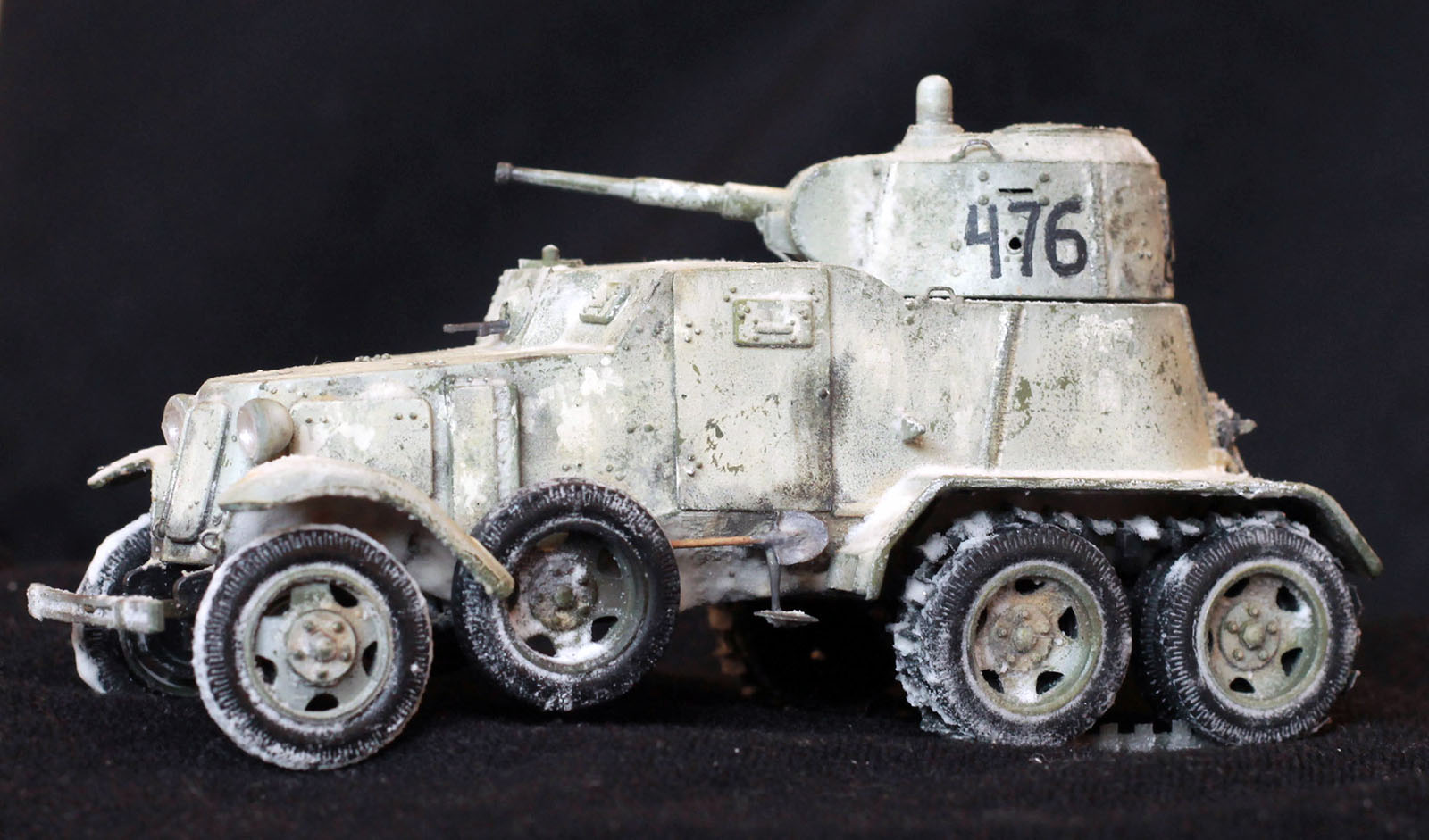 Качество деталей очень низкое: облой, нестыковки, одни и те же детали (обода колес) отличаются размером даже визуально! Начал собирать бронеавтомобиль, так как не хотел морочиться с гусеницами танков. В итоге за время, потраченное на подгонку и сборку только колес хватило бы на гусеницы пары танков. Про недостачу клёпок и некоторых деталей уже всем известно. Пулемётики из литников, родные очень убоги. Тем не менее, дорабатывать было интересно. И всё же, пытливый глаз сможет заметить немало несоответствий. Окрасить попытаюсь в зимний камуфляж.