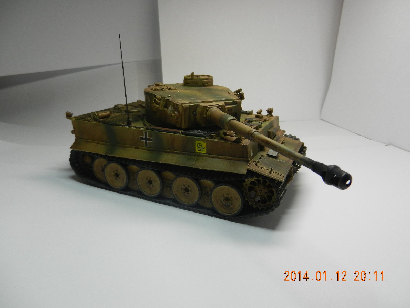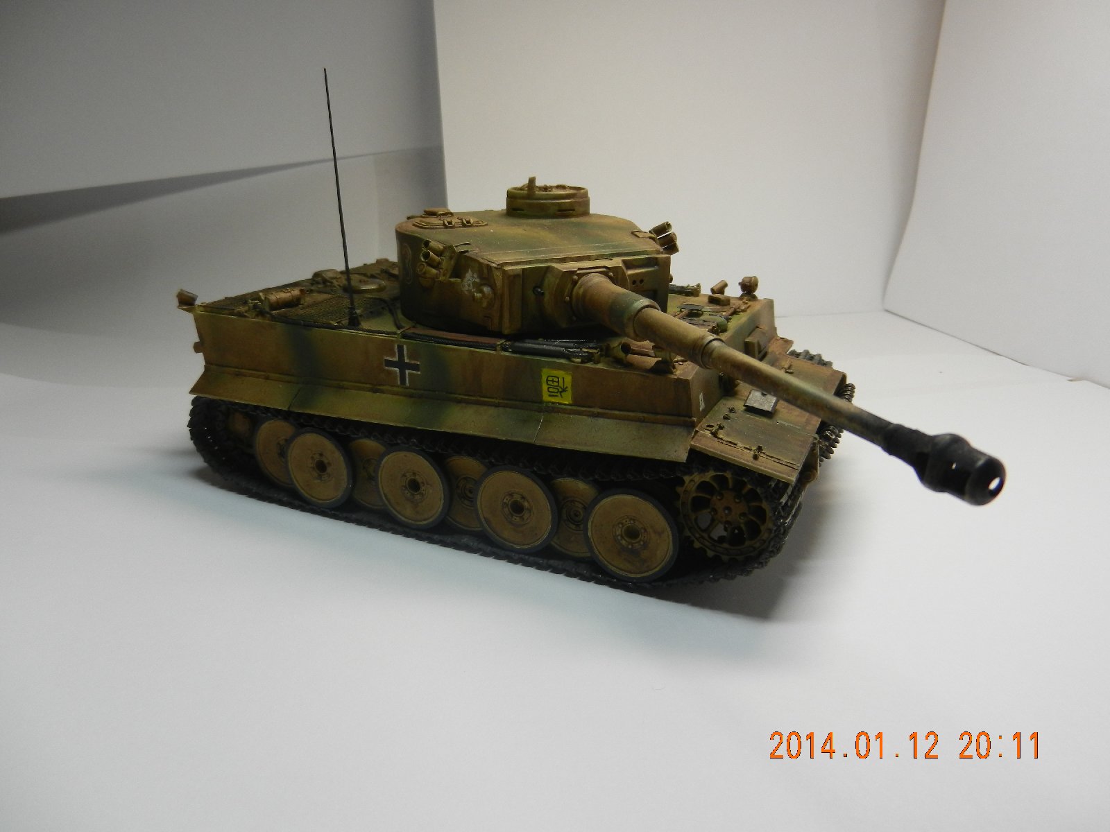 Вот теперь стало видно, что модель вышла очень даже неплохая, но смывка убила все. Обсуждать тонкости матчасти Тигра дело неблагодарное, но все доработки в тему. Думаю, Вам нужно потренироваться в покраске на каких-нибудь простеньких моделях без упора на матчасть, и всё будет совсем замечательно. Ну и фотографировать нужно учиться, уж если хотите показать модель обществу, то это лучше делать красиво))). Кучу листов лучше не использовать, а купить ватман. Дерзайте, и всё получится!