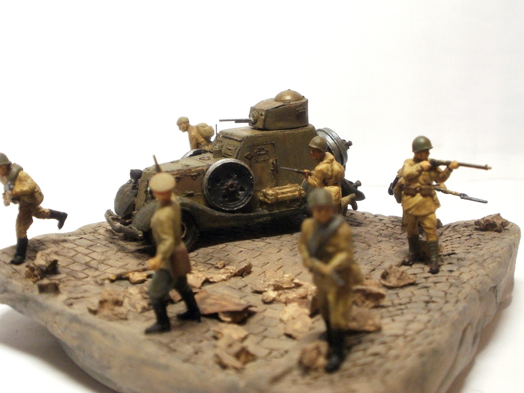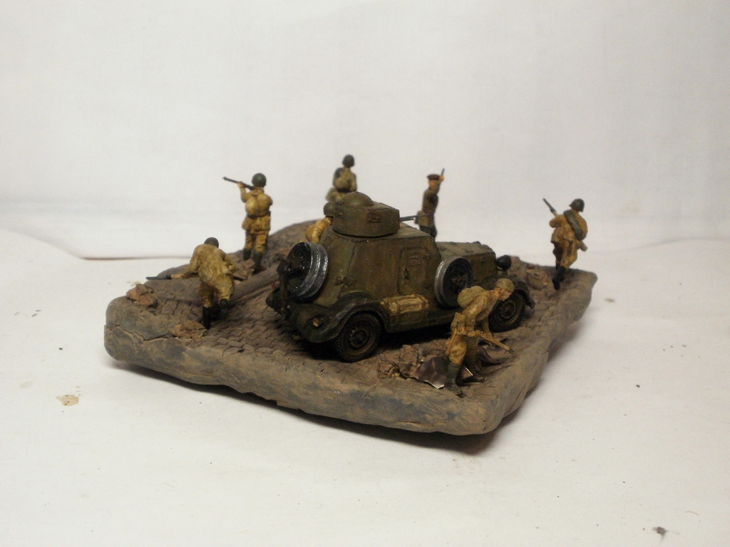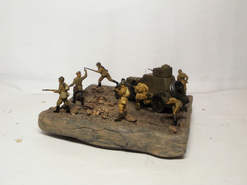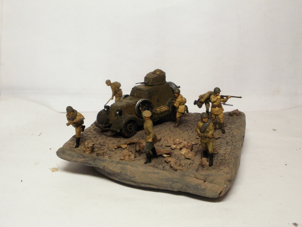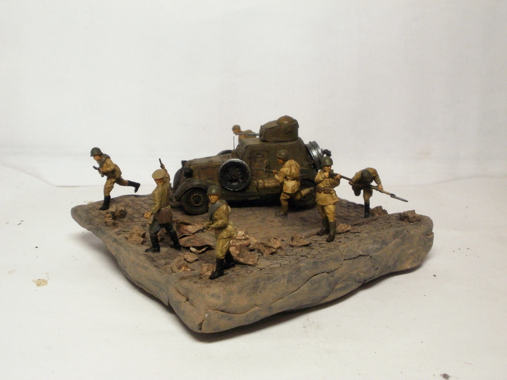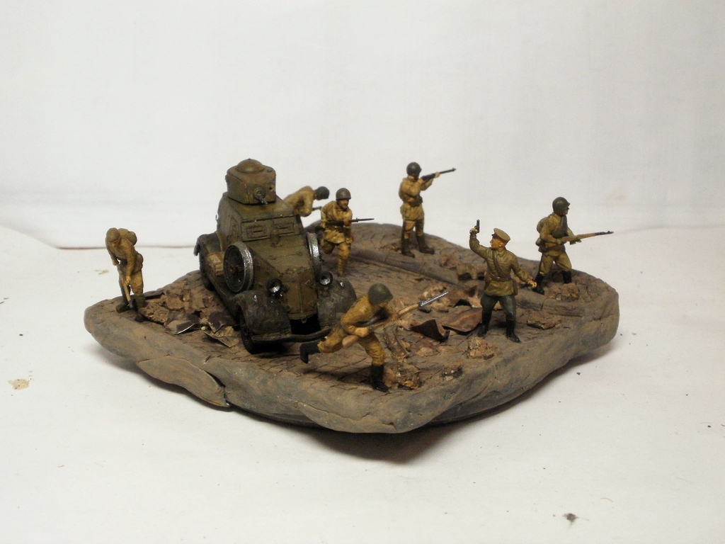 Игорь,мне понравилась диорама,но основание нужно поаккуратней выправить и обрезать и в центре пустое место,нужно что-то сдивинуть