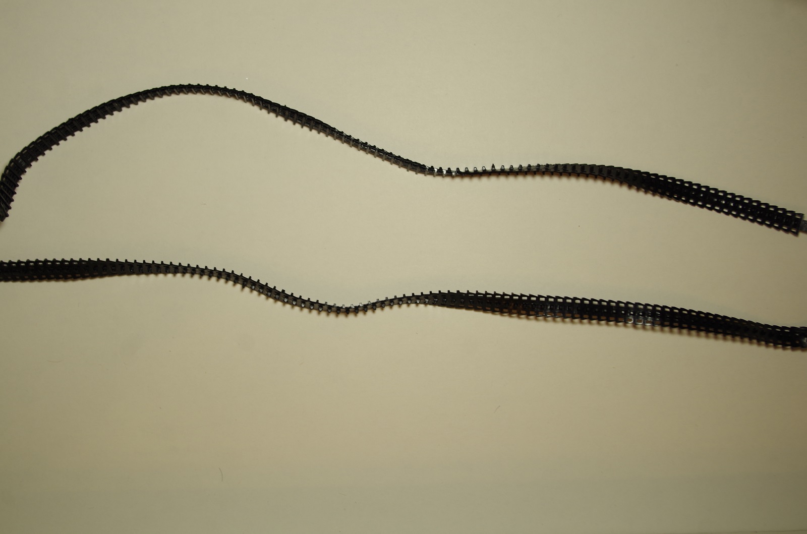 Гусеницы погрузчика выполнены без гребней, заместо них присутствует небольшое утолщение по-середине почти по всей длине полотна.