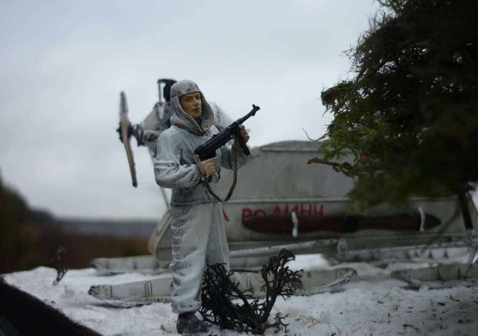 Классная работа. Понравилась задумка набор разведчиков и пленного в летней форме адаптировать к зиме. Про пейзаж и технику вообще можно говорить, как о руке мастера. А по фигурам - ну, все мы учимся и опыт приобретаем с каждой новой работой. Труд вложен очень большой, и вообще, все работы Дениса отличает то, что рассматривать их очень интересно.