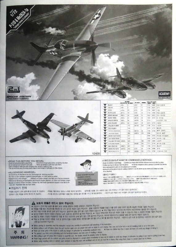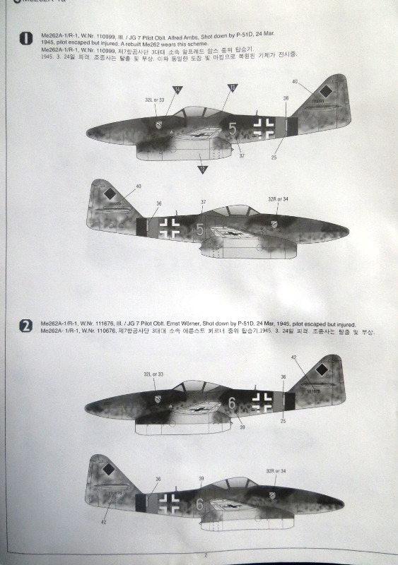 Модель 2 в 1 от академии специальная серия,приобрел сей кит за 750р,нужен был Р-51D, отдельно не нашел, пришлось брать этот набор.Качество литья на достойном уровне.Для Ме-262 два варианта маркировки,для Р-51 3 варианта.