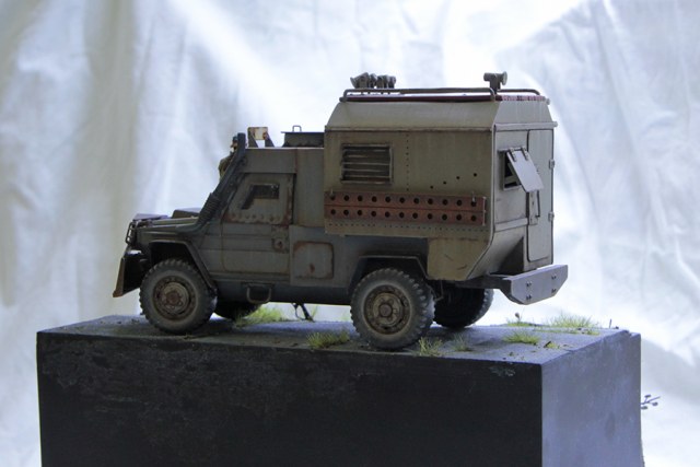 Отличная работа! Единственно, так смутила большая высота машины. Ведь так ее легко раскачать и перевернуть(вспоминая рассвет мертвецов). Но это так придиризьм к конструкции